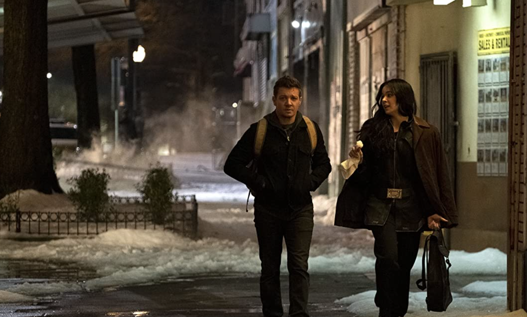 One person who is fixated with the bowman, however, is Hailee Steinfeld’s Kate Bishop. She’s juggling all the challenges of student life and returns to New York City for the winter break and finds herself trying to uncover the truth surrounding her stepfather’s dodgy dealings. Her dreams come true when she crosses paths with her hero, as Clint’s shady pre-Endgame (2019) shenanigans catch up with him. It’s these shenanigans that lead him to become re-embroiled in the criminal underworld with Kate. Being the hero he is, he makes it his mission to protect the youngster from the group of mobsters hunting them down, all in time for him to fly home for a family Christmas.