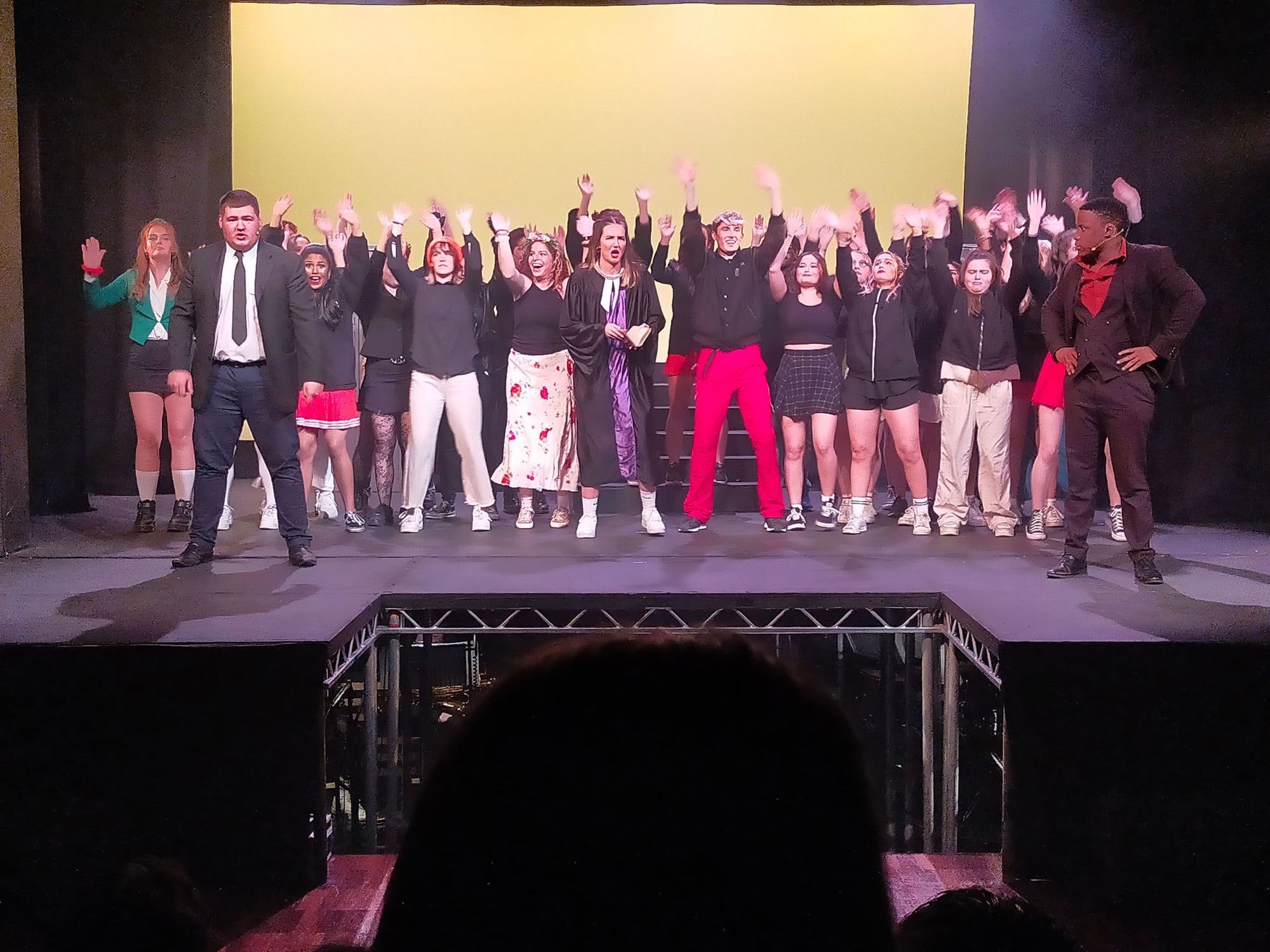 The conductor, Madeleine Warren, gave a downbeat which struck a spark, electrifying the packed Winston Theatre. The well-oiled juggernaut MTB orchestra responded with elan. Heathers as a musical is graced with memorable numbers with hummable melodies. The cast and the musicians rose up to the challenge by providing a burnished sheen to each musical number displaying their unparalleled skills.