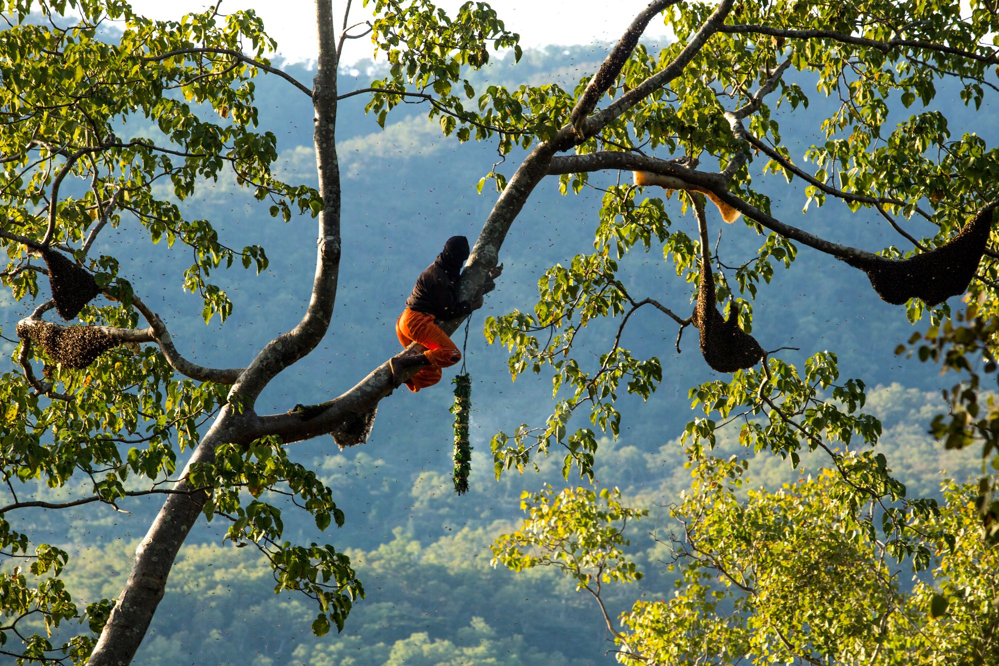 Honey is often an important resource for hunter-gatherers. There are several groups in Africa, such as the Efe foragers of the Ituri Forest in Eastern Zaire or the Molo community in West Timor, Indonesia, who have historically utilised all parts of the beehive and relied on honey as their main source of food. Using ropes and poles, they are known to harvest beehives as high as thirty metres above the group whilst sending up smoke to lure the bees to sleep.