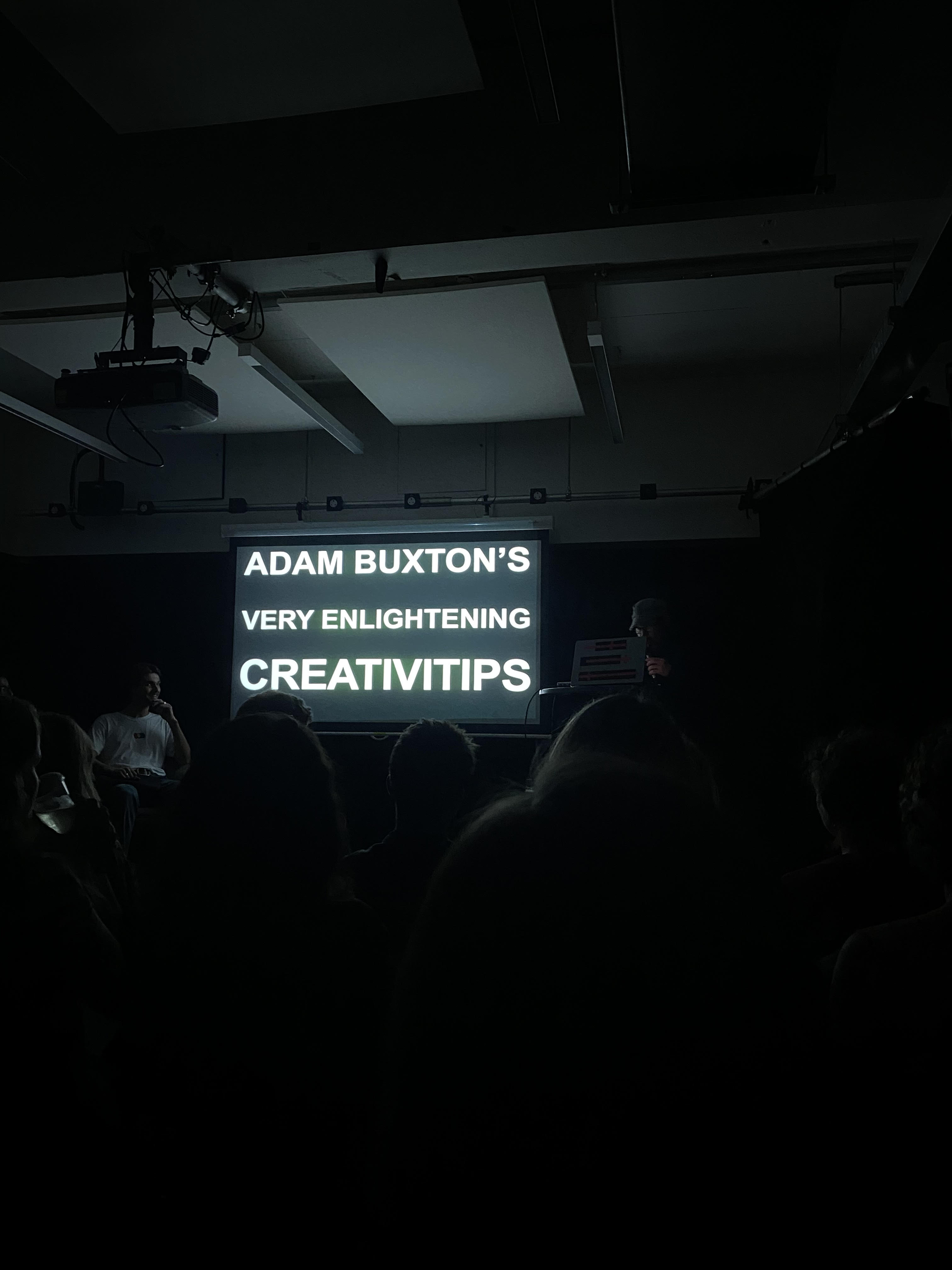 Buxton didn't just walk us though his career, but also gave us, the audience, tips, or as he called them 'CREATIVITIPS', on how to get started in an increasingly competitive and confusing creative world.