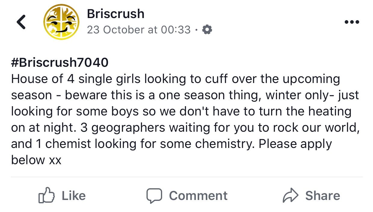 We all know that Briscrush is an unfailing platform for cuffing your crush, not just a place to declare your love for the edgy girl in your seminar who you’ve extensively Facebook-stalked without being judged by your peers. If you’re looking to cuff someone this winter, then writing a Briscrush is definitely a smart first move. Advertise yourself as being desperate for love and willing to date anyone, and watch your inbox flood with requests from Bristol’s best.