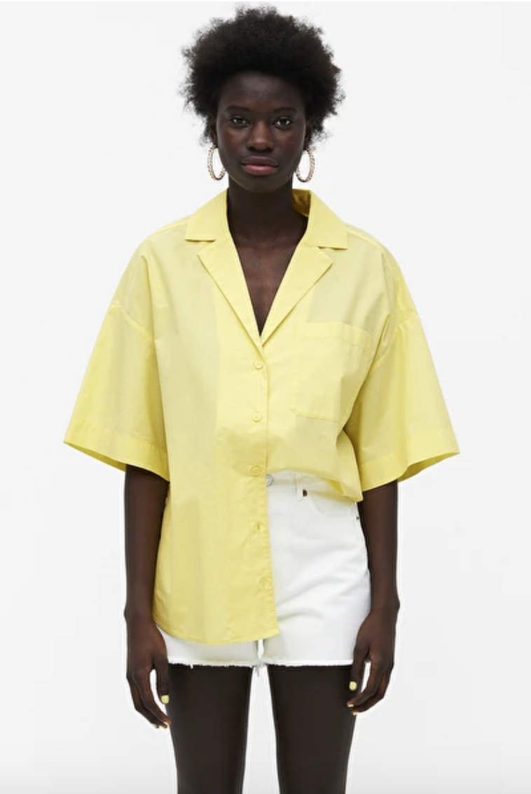 This boxy, yellow shirt is super cute, paired either with denim shorts, or even mom jeans for a relaxed look. Oversized shirts are also set to make a comeback this season, so the bigger the better.