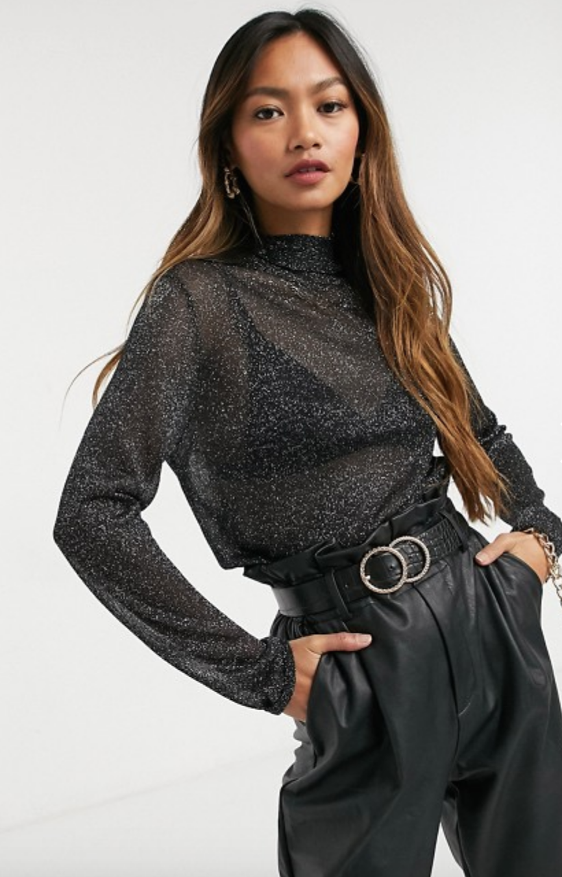Or to bring some more glamour into your life, this sparkly mesh top from Fashion Union is an affordable option to wear to a your-house-only lockdown shindig. As in the words of Vogue “let the living room disco commence”.