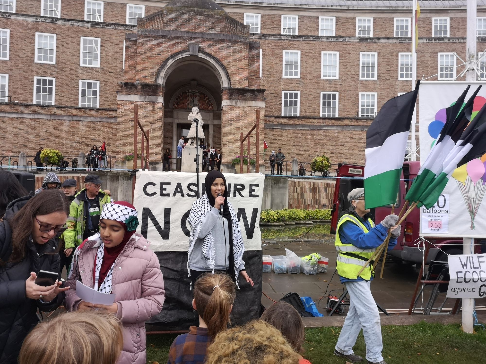 The rally began at 11am and finished around 1pm. Among those who addressed the rally were pupils from local school such as Redland Green School, Montpelier School, Brunel Academy and Cotham School. The speakers represented a range of ages - from Reception to Sixth Form, which included some personal accounts of family members being affected by the humanitarian crisis.