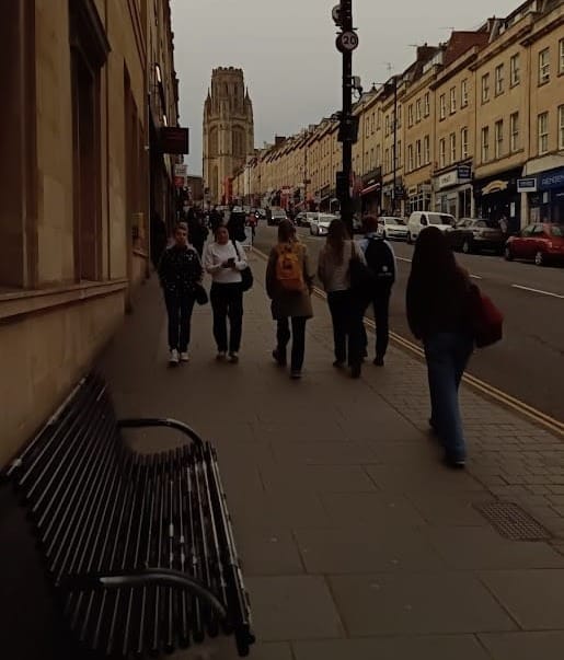 Park Street, one of Bristol’s busiest hubs for students, shoppers, and tourists, is a striking example of how public spaces in Bristol can be unintentionally uninclusive. Despite the heavy wave of people, benches are scarce, only one can be found, and even that sits at the foot of the street, forcing anyone with mobility issues to struggle uphill. Even recent street improvements under the Liveable Neighbourhoods scheme fail to address this – and may, in fact may exacerbate existing problems.