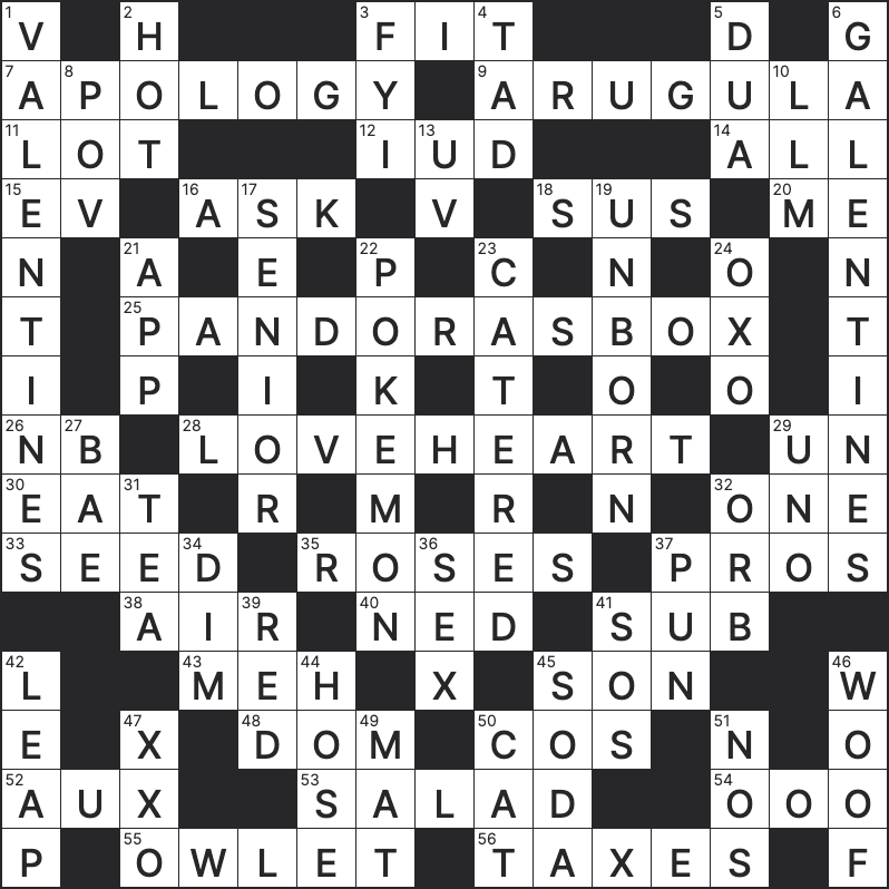 Don't be fooled by its lovey-dovey exterior, Miles Gilroy's February crossword was not for the faint of heart (get it because... you get it). Find the solution below: