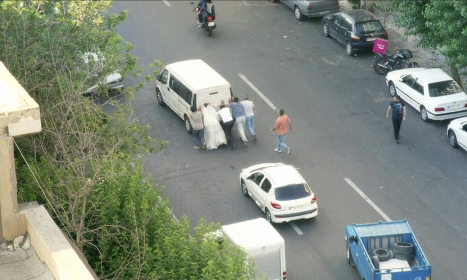 For a film concerned with state brutality, the nature of retribution and the psychological altering of the individual upon oppression, It Was Just an Accident is equally perversely hilarious. The abducted subject lies in a casket, as characters ranging from a wedding photographer, a bride and groom and a quick tempered townsperson farcically bundle into Vahid’s van one by one. Each muddled over the identity of the kidnapped man, they squabble and collapse into a chaotic frenzy. Later on, they are made aware that the man’s wife is going into labour. Naturally, they pick her up and take her to hospital with her husband hidden in the casket next to her.