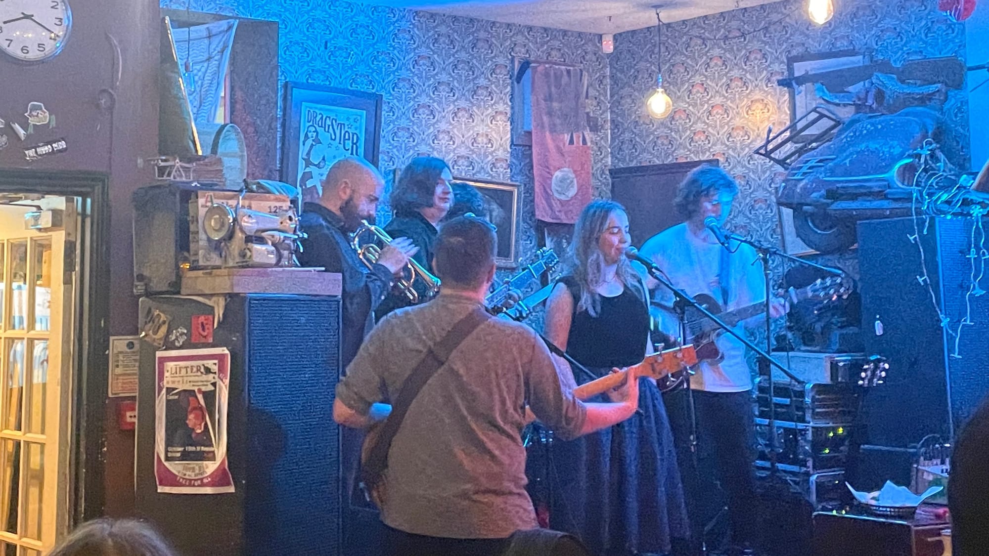 Sandwiched between couples sharing tacos and reuniting friends toasting tequila shots, I watch LIFTER prepare for soundcheck in the corner of The Ill Repute - Old Market’s favourite destination for live music and homemade Mexican food. The bar’s aesthetic is somewhere between 80s dive bar and your grandma's living room, and as cornet player Harry Furniss wrestles a velvet tasselled lampshade from the stage, I wonder how the seven-piece are ever going to fit.