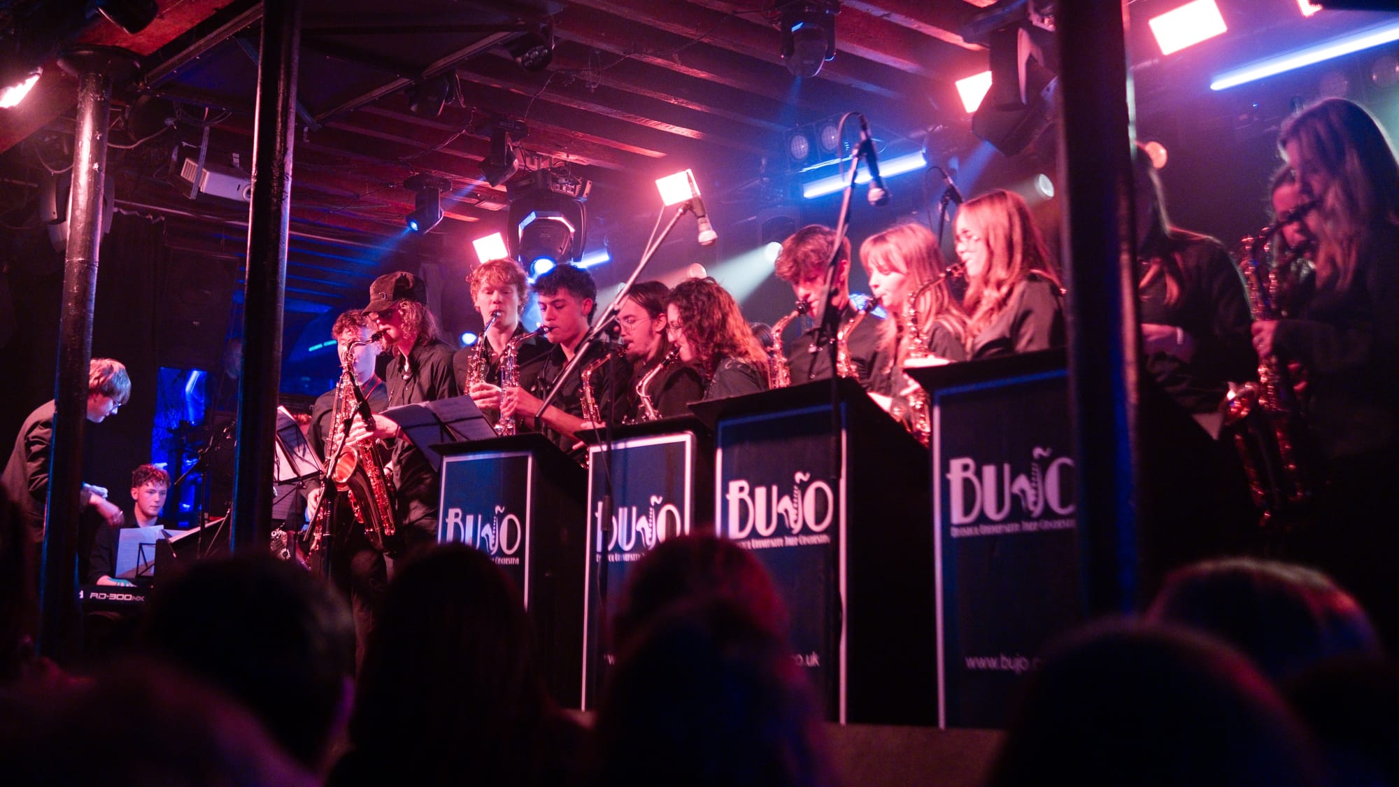 Suitably warmed up, Bristol University Jazz Orchestra (BUJO) - perhaps the most appropriately named BIG band you'll ever see - assumed their seemingly cosy position on stage.