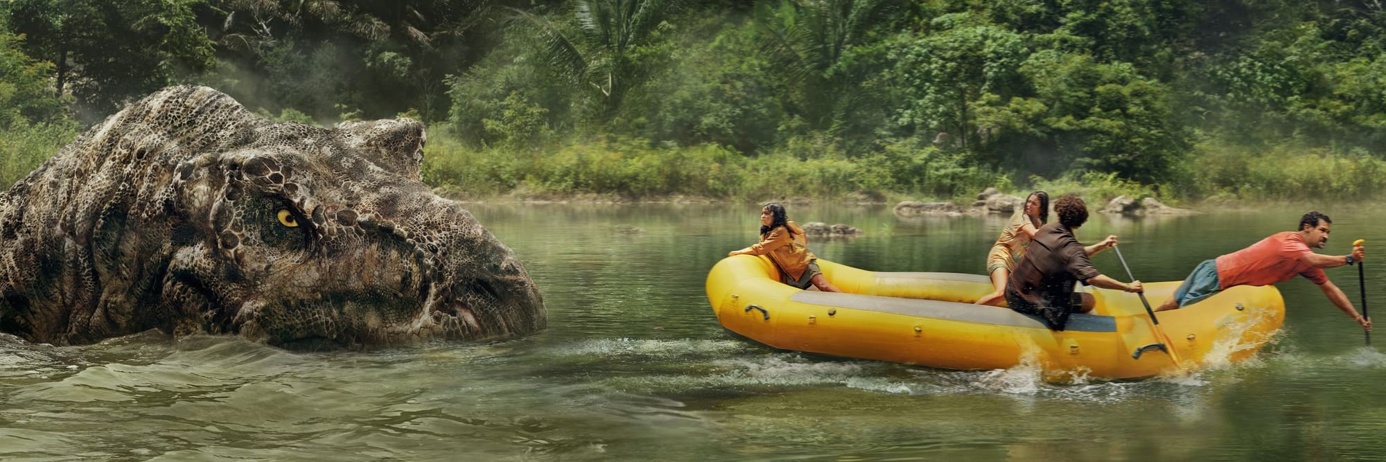Bennett’s friends and crewmates are so inconsequential that you know they’re marked for death within their first scene, and their inevitable demise five minutes later barely warrants more than a furrow of the brow. Surprisingly, the film features far fewer deaths than expected. The Delgado family all somehow make it out alive, despite being possibly the least intelligent human beings on the island. Reuben takes top spot, consistently letting his children wander into danger before silently waving them over when they’re seconds away from being chomped by a dinosaur.