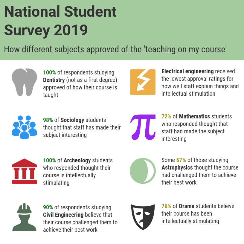 The most recent National Student Survey has shown student satisfaction to be at 85 per cent overall, an increase of three per cent on last year.