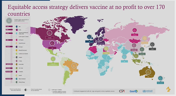 Certain stages of the vaccine development including clinical trials in US, India and Japan were sponsored by AstraZeneca which aided the global effort.