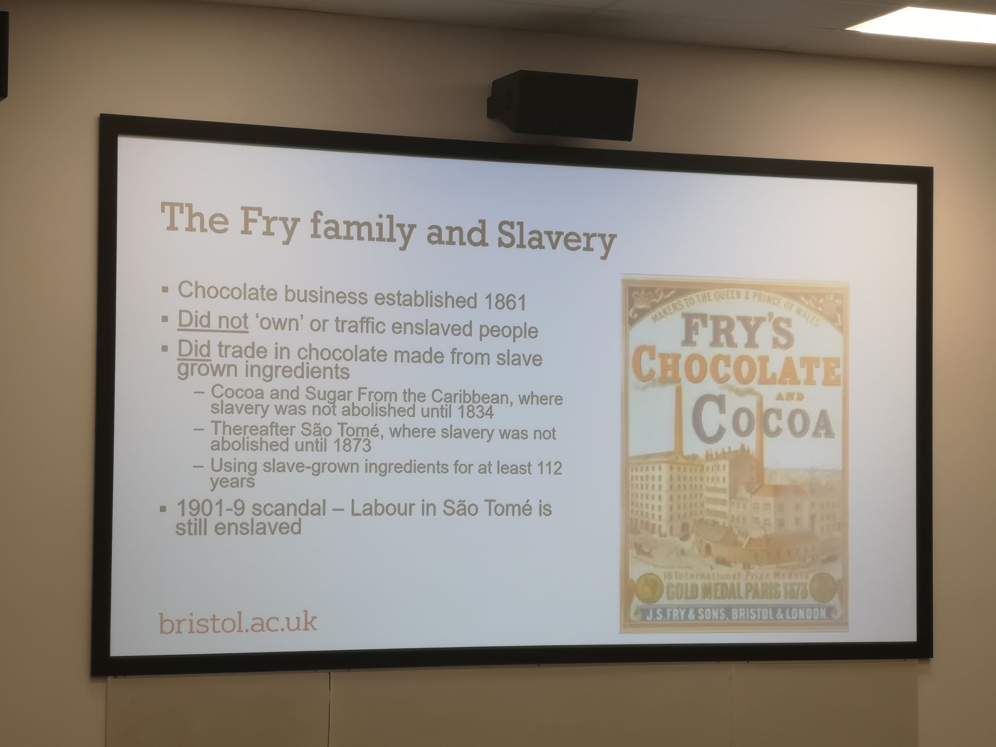 Though neither the Wills family nor the Fry family were directly linked to the slave trade, both families benefited through structures laid in place by slavery. Dr Stone further pointed out that, even after the Abolition of Slavery in 1865, exploitative practices such as indentured labour continued right through to the next century.