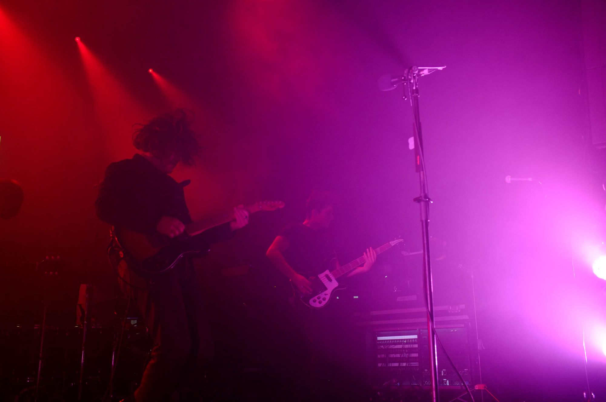 Here in Bristol on a lively Saturday night (12 October), they proved that they can maintain their raw energy despite the well-known rigours of performing every night. I arrived expecting to hear the majority of their latest album, Philophobia, played - a cagey, guitar-heavy set of tracks designed to reverberate through a large audience. Instead, to the satisfaction of a room filled with loyal fans, the band went down memory lane with a fairly even split between their three albums.