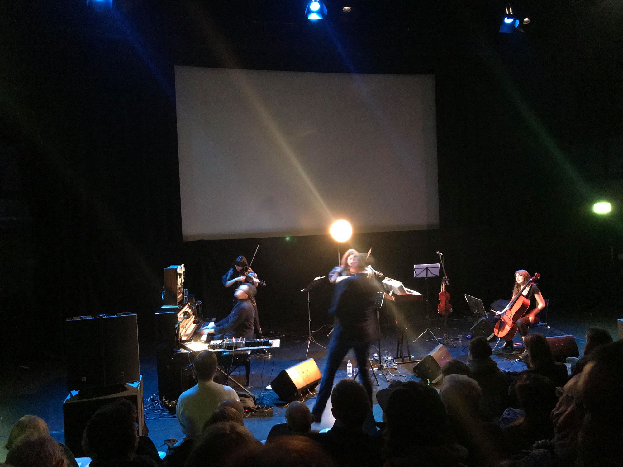 The Arnolfini art gallery lent to a particularly fitting backdrop for the Scottish composer's performance. In many ways the performance felt like a living and breathing art installation, evoking the essence of the stark Scottish landscape: the textural orchestration and excerpts of tape recordings both of native bird cries and dulcet Scottish tones, as well as poetic excerpts presented by Cooper amidst gentle conducting waves to his quartet. The audience observed the inner workings of the ticking cogs that maintained his rich soundtrack, with multi-instrumentalists shifting their roles within the undulating tides of the track list, providing an additional visual perspective.