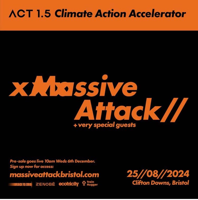 The Downs homecoming gig on the 25th August 2024, billed ‘ACT 1.5: Climate Change Accelerator’ promises to be the first of its kind in being 100% powered by renewable energy. The aim is to ‘trial new standards for the decarbonisation of live music’ through ‘a first physical fruition of their collaboration with climate scientists and analysts’. Unlike other ‘green’ event organisers, whose coyness on what steps are actually being taken to be sustainable is suspect at best, Massive Attack have been crystal clear.