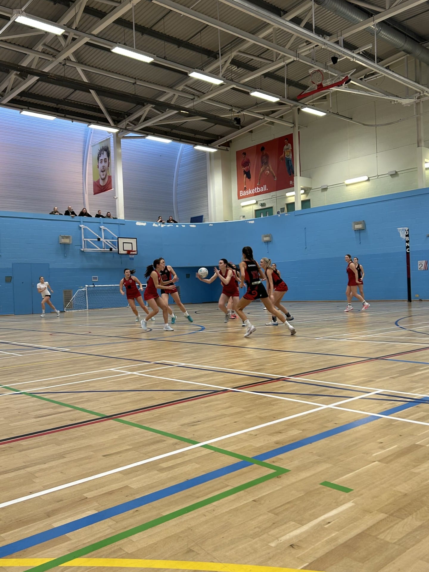 Iris Huggins (GK) started the first quarter off with a bang, gaining a backline turnover on the first Cardiff centre pass of the game. Setting the tone for the next sixty minutes, it was certain that Huggins did not plan on losing this match. Playing the ball out from the back line, Huggins earnt her team the first goal of the game scored by co-captain Fran Tomassoni (GS). Whilst Cardiff had let Bristol take the first couple goals of the match, they certainly did not plan on making the rest of the game that easy. Going goal for goal for the majority of the first quarter, the two sides kept the spectators on their toes. Similar to her defensive partner, Grace Durand (GD) turned a ridiculous amount of ball for the team in red. Durand’s arms over pressure paired with co-captain Betsy Thomas’ (WA) through court drives allowed Bristol to swiftly get the ball into Bristol’s resident long-bomb shooter Charlotte Howart (GA). Pushing Bristol into the lead and ending the 1st quarter with a score of 12-9 to the home side.