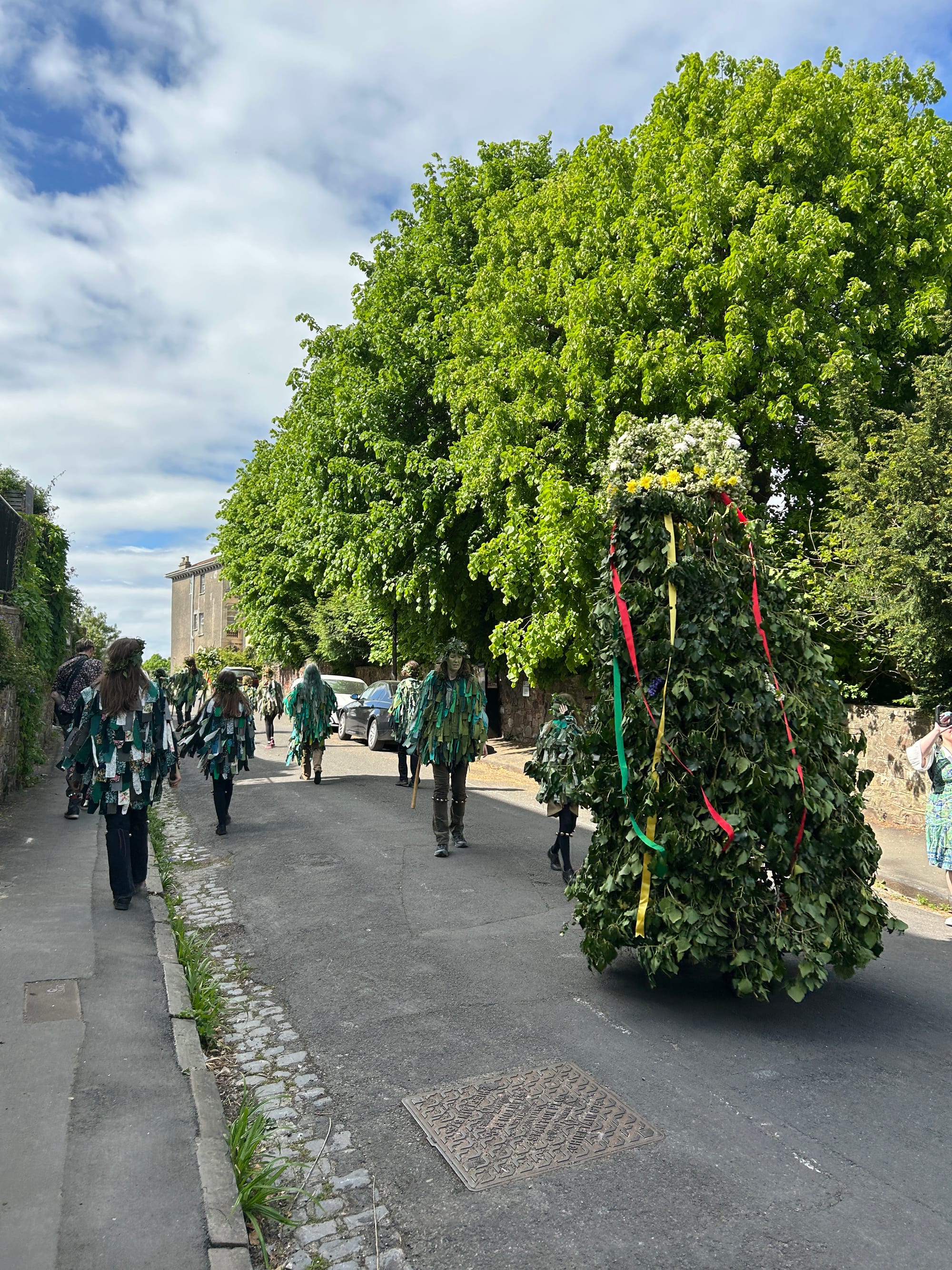 I followed Jack in the Green to Redland. Along the way, he stops at various checkpoints and people come out of their houses to watch his procession dance around him. Watching with me was a slightly confused American dad who tried his best to answer his young daughter’s queries about Jack: ‘Who is he? Why is he here? What if he gets stuck? How can he walk?’ The dad, stumped, answered after a pause, ‘you’re asking some really good and hard questions.’