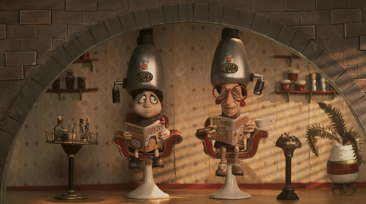Every aspect of this film is so full of soul, dedication and effort, as is usually the way with the arduous process of stop motion. However, the particular style of Elliot’s Claymation with all its bumps, imperfections, and eccentricities gives so much heart to every frame, and matches the themes of his characters. Each still is so carefully thought out and detailed and is made even more interesting by a quote that has significantly stuck with me: “Life can only be understood backwards, but we must live it forwards”. There are several objects and moments in the film (particularly during the opening credits and scene) that can only be understood fully once the narrative has been completely explored, and there’s something really beautiful in that and the way that this mimics our own lives. The visual aesthetic of this film teeters on an interesting barrier between beauty and disgust; the detail of the production design and meticulous world building is awe inspiring to say the least, though there is something slightly unsettling about some of the character design and action. However, this only corroborates with the bleak subject material and complex characterisation further creating a thoroughly captivating diegesis.