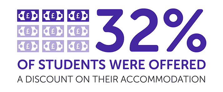 With the uncertainties of the last few months resulting in the non-occupation of student accommodation, the survey found that 32% of students questioned had been offered a refund on their rent, of which 9% were offered a full discount, and 23% offered a partial one.