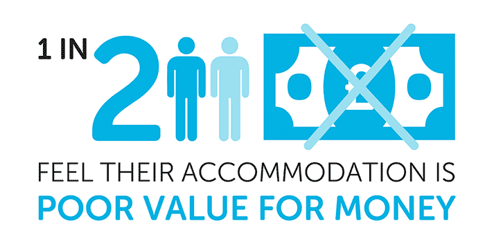 Findings from the survey showed a 10% drop in students who view their accommodation as good value for money, with 1 in 2 students feeling their accommodation is poor value for money.