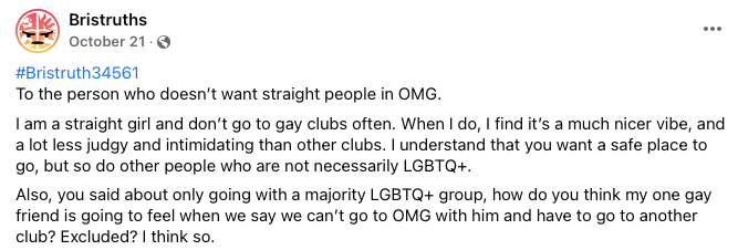 Those who do not identify as LGBTQ+ need to consider their attitudes towards the club