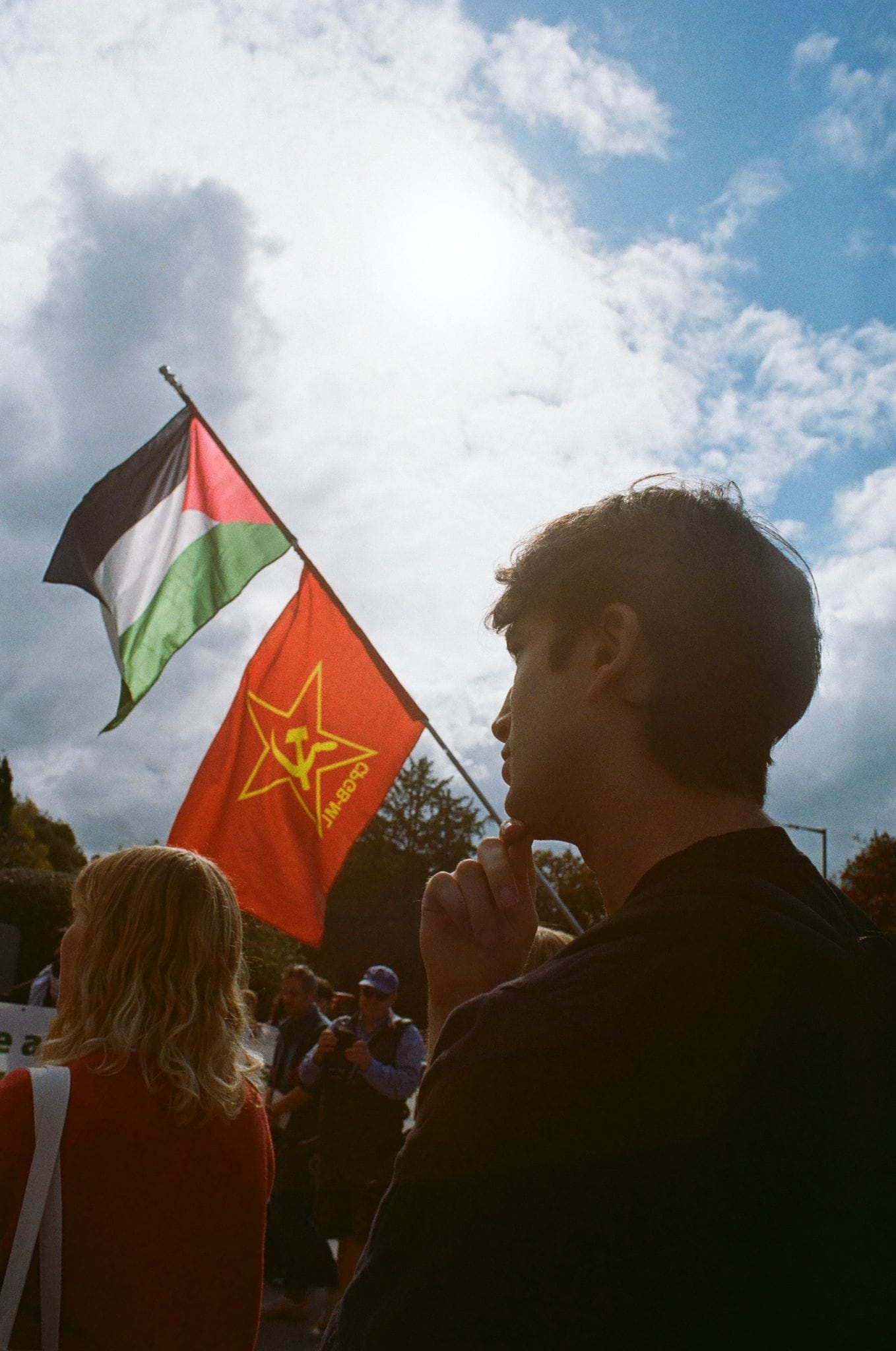 Mabel, a member of the Socialist Worker Society, said to the crowd, ‘We must demand that our university cuts all ties and investments in Israeli arms companies… We must resist the militarisation of our tuition fees.’