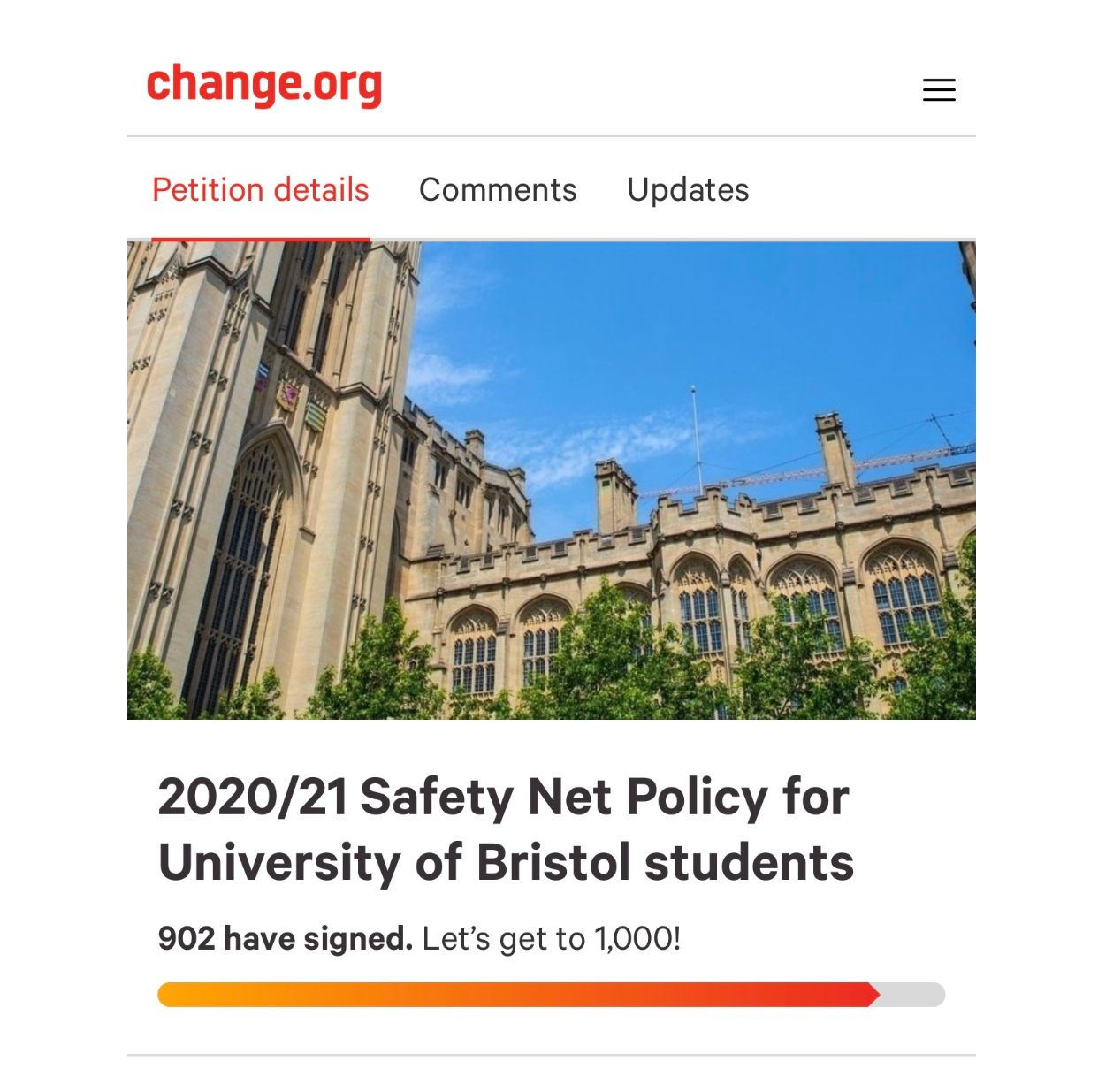 The petition is one of several circulating online amongst university students asking universities to review their safety net provisions to take account of the pressures on university students in the current circumstances.