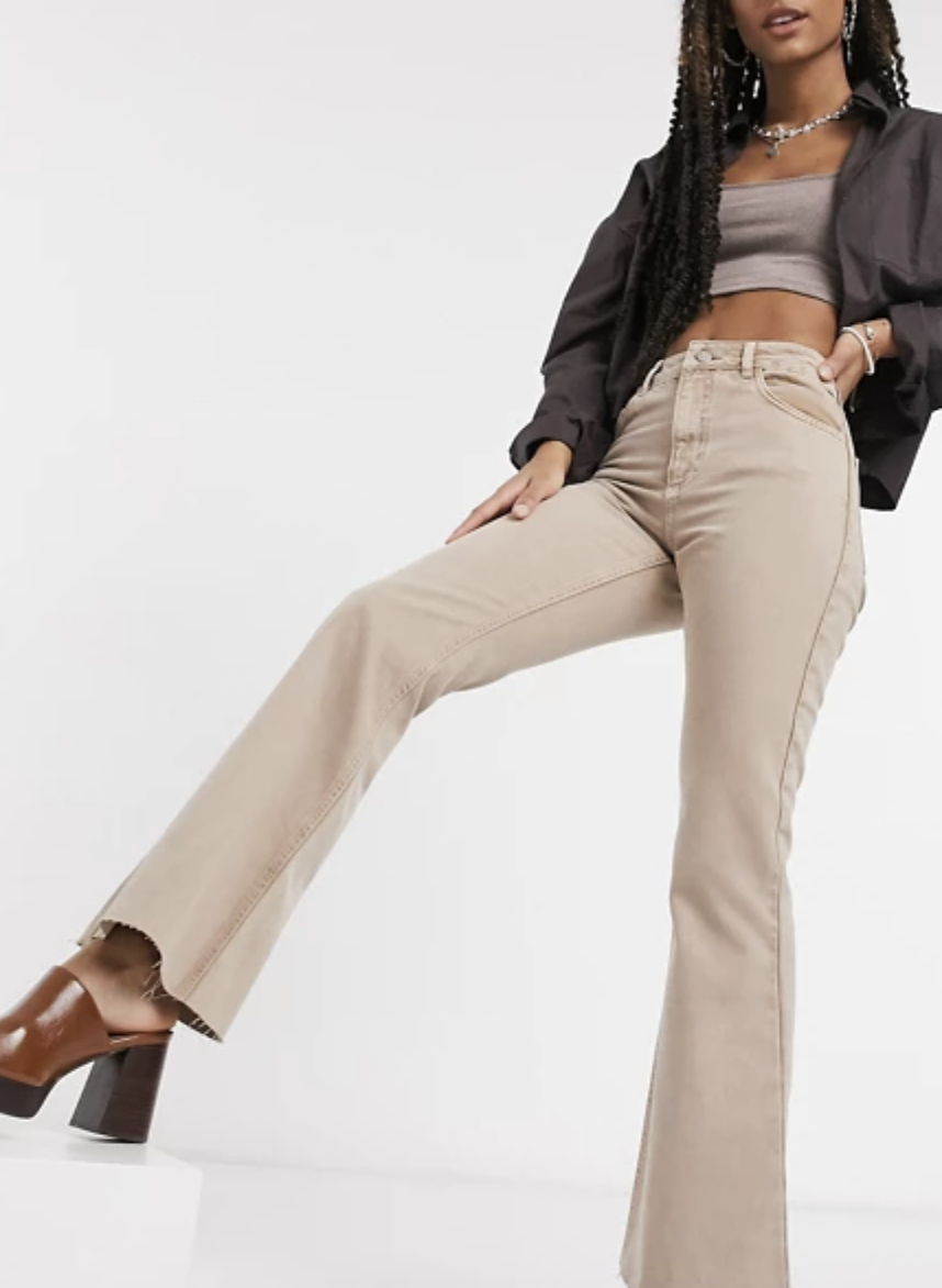 When it’s snowing one weekend in April and twenty degrees the next (RIP our planet <3), its important to be prepared for unexpected weather. So, when it’s a bit breezier outside - these brown flare jeans and bustier top make a stylish comfortable look that you can easily throw a jumper over.