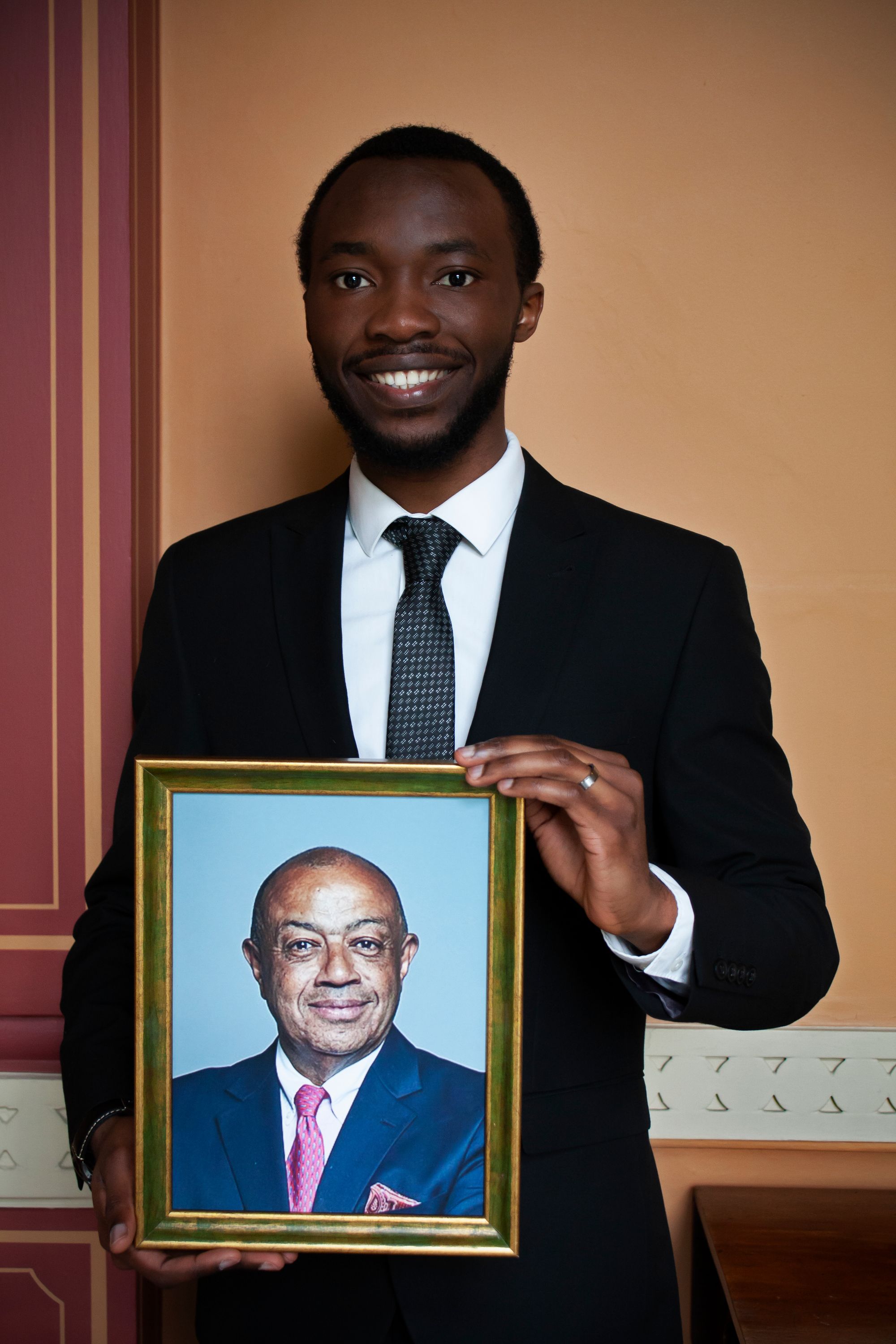 Lord Boateng’s portrait can be seen displayed in the hands of Robiu Salisu, Bristol University’s BAME student inclusion officer.