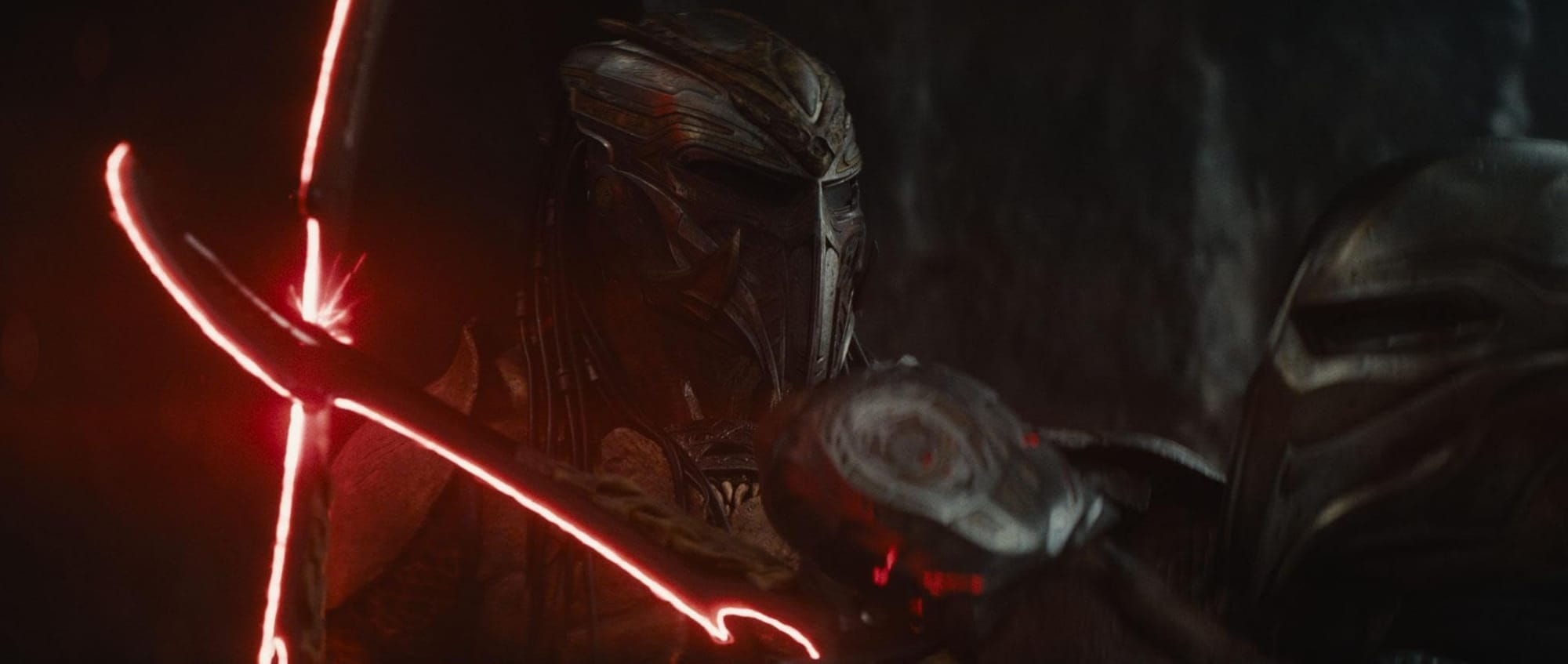 A strikingly fantastical element of the costume design is the seamless blend between the Yautja’s skin and its armour, it’s often impossible to tell where one ends and the other begins. When bright neon-green blood splatters across the frame, accompanied by the threatening guttural roars, it evokes the ferocity and familiarity of the Predator we have witnessed in the series’ previous films.
