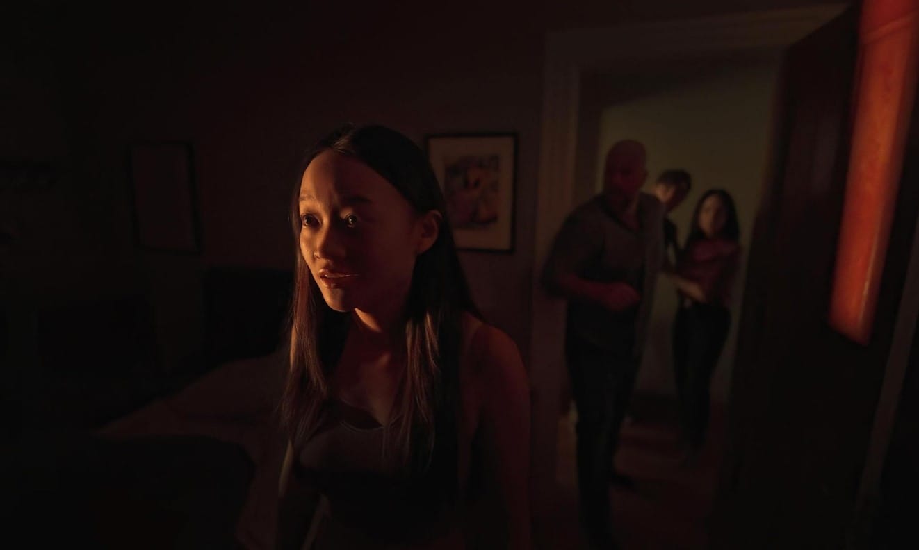 Presence is the story of a family falling apart, not at the hands of supernatural forces or real grief, but of terrifyingly bad exposition. From the moment Julia Fox opens the front door to them, as the estate agent of a gorgeous suburban house in New Jersey, it is clear that all information is to be delivered with the same level of subtlety as brat summer. Each member of the Payne quartet is endowed with the flimsiest of ‘development’: Rebecca is the familial villain because she sycophantically obsesses over her son Tyler; Tyler is an arrogant cardboard cut-out of a swimming medallist; Chris is a typical step-dad, unable to navigate parental boundaries except a special quasi-religious threshold he occupies with neglected daughter Chloe; and Chloe, perhaps the most sympathetic of all, is denied distance from confrontation of the conveniently vague deaths of two of her friends. These pseudo-circumstances make for a reveal of Chloe’s sixth sense that reads too much as a heavy-handed stage direction to have any ethereal impact.