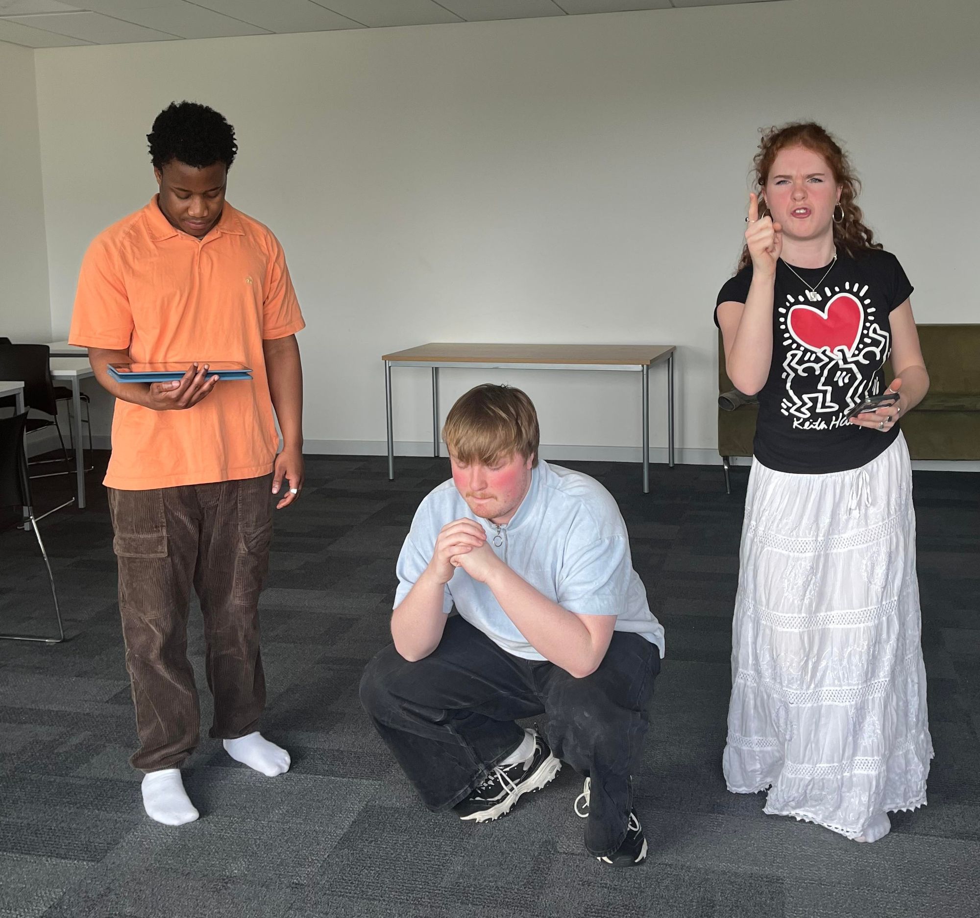 Watching a rehearsal, I was able to see first-hand just how collaborative the production process had been. Every actor was able to speak to me in detail about what their character brought to the play, and why they loved them. Oshi, who plays Anton, had a particular connection to their character, ‘I love being Anton. The character is such an interesting look into how we present to the world, versus how others see us,’ adding, ‘and I love wearing lippy!’
