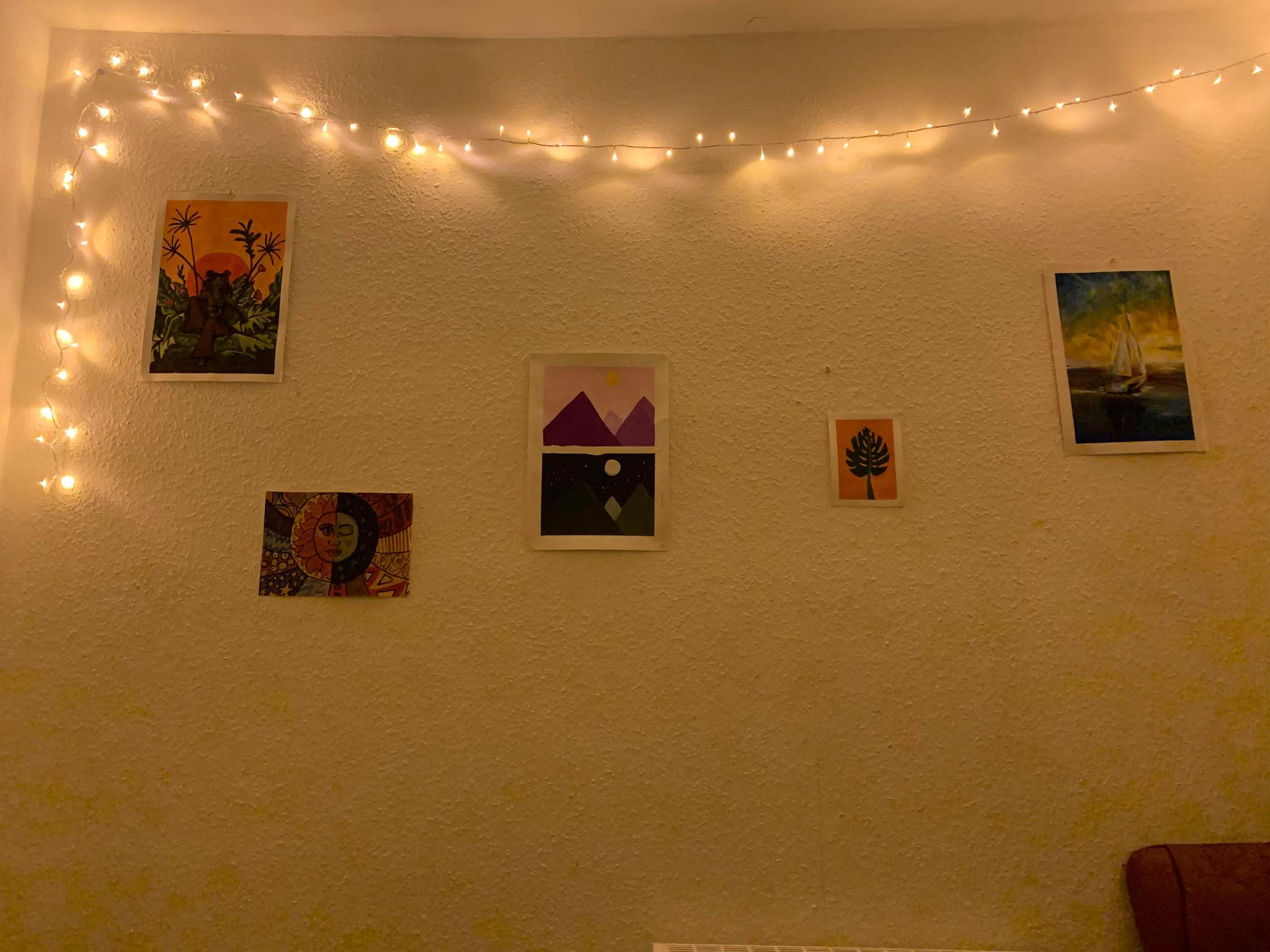 One thing we did immediately was to turn our communal working area into somewhere we wanted to be, despite wishing we could be almost anywhere else. We all painted something for the wall and hung up fairy lights. With our world shrinking with a day’s notice, it proved valuable to make our remaining tiny pocket of the universe as bright and sunny as we could.