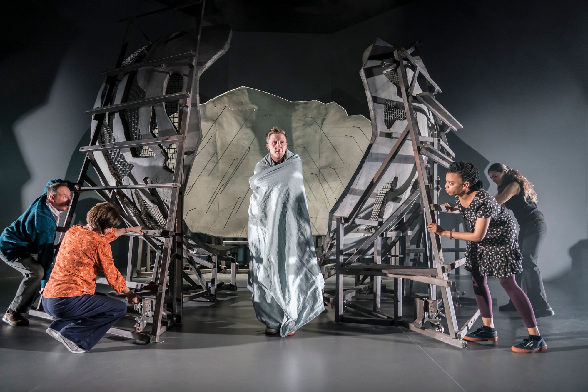 The simplicity of the set design adds character to the performance, contrasting with the unsimplicity of the unique mind. Consisting of three movable climbing frames, closely resembling a brain, the set symbolises the fragmentation of Matt’s mind throughout the performance as the cast effortlessly rotate, separate and bring together the different parts of the set.