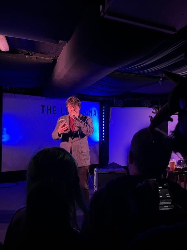 He performs with little accompaniment, often just a drum machine/key loop in the background; sometimes he’d pick up a guitar too. On occasion this approach would go wrong, and he’d trigger the wrong sample by mistake – but this adds to the charm once quickly rectified, in my opinion.