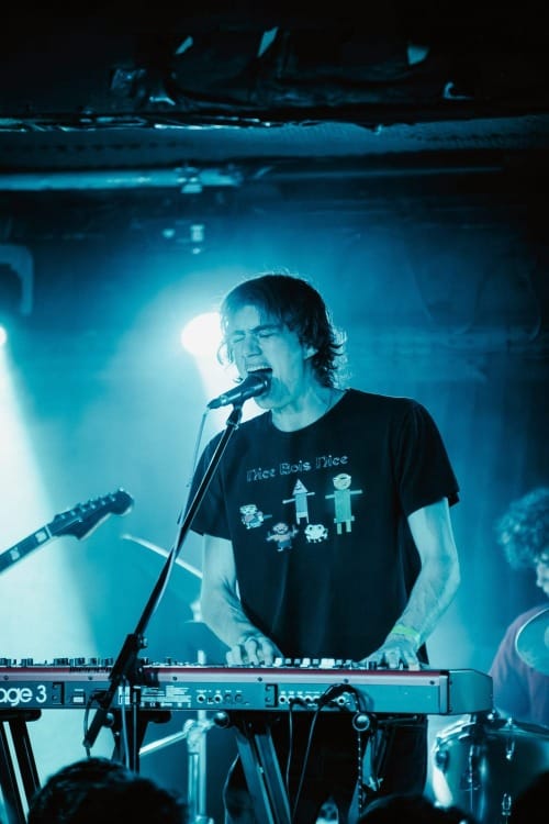 At their set at Exchange, they performed nearly all of the tracks from the two aforementioned EPs, including standouts: ‘Escape from New York’, ‘Wake Robin’ and ‘Hattrick’, as well as a few newly written, unreleased songs. Scarisbrick is an interesting character live – he seems to shy away from the spotlight, only coming out of his shell when he lets the music fully consume him. During moments of quiet, he hides behind his Korg electric Piano, (or maybe he’s just crouched down there to hit his vape).