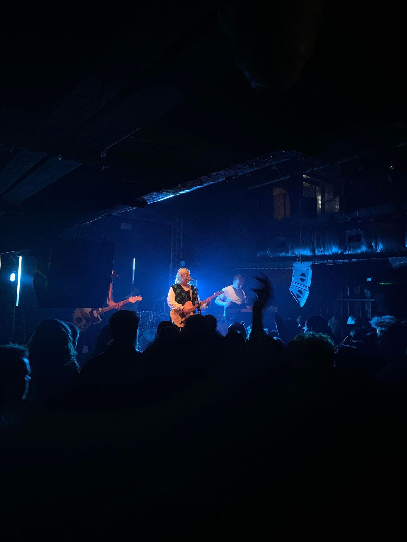 The second opener was The Rills, who’s hilarious Tik Tok presence I had encountered before. Songs such as the fourth in their set “World Leaders” really got the crowd going. Drummer Mason Cassar showed off his skills by not only stealing the show in this particular song, but by the fact he knew exactly what each song demanded of him; especially important as the band are only a three-piece. Therefore, it would be wrong to suggest that their headline show at Rough Trade on December 12th is going to be any less than brilliant.