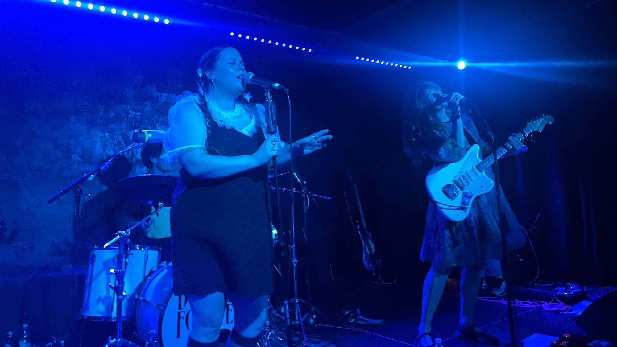 Their chemistry is palpable, particularly in ‘Split Lip’, where the pair manoeuvre their mic stands to face each other and lock eyes to sing ‘But you can't be everybody's everything alright / You're not a pocketknife’. It’s a reassuring love song to one another, Hannah explains after the song ends, and the heart-warming lyrics pair perfectly with the dreamy indie-pop melodies that embody a comforting feeling of girlhood.