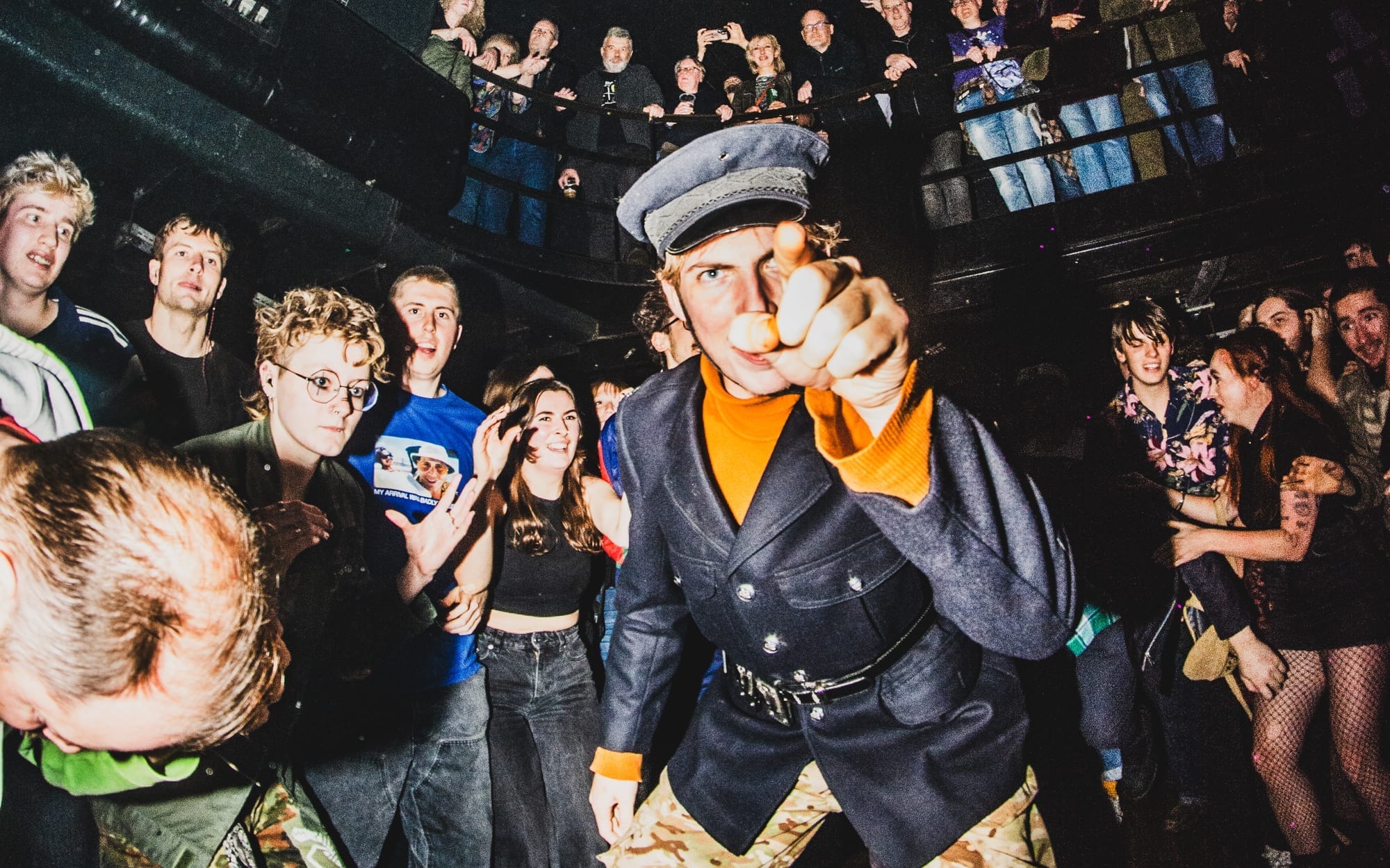 A profusion of wires, guitars, peddles spill out across the Thekla stage and what follows is a wealth of sound. Filling the venue with hammed-hypnotic beats and nihilistic depraved lyrics, Fat Dog's return to Bristol is nothing short of eccentric genius.