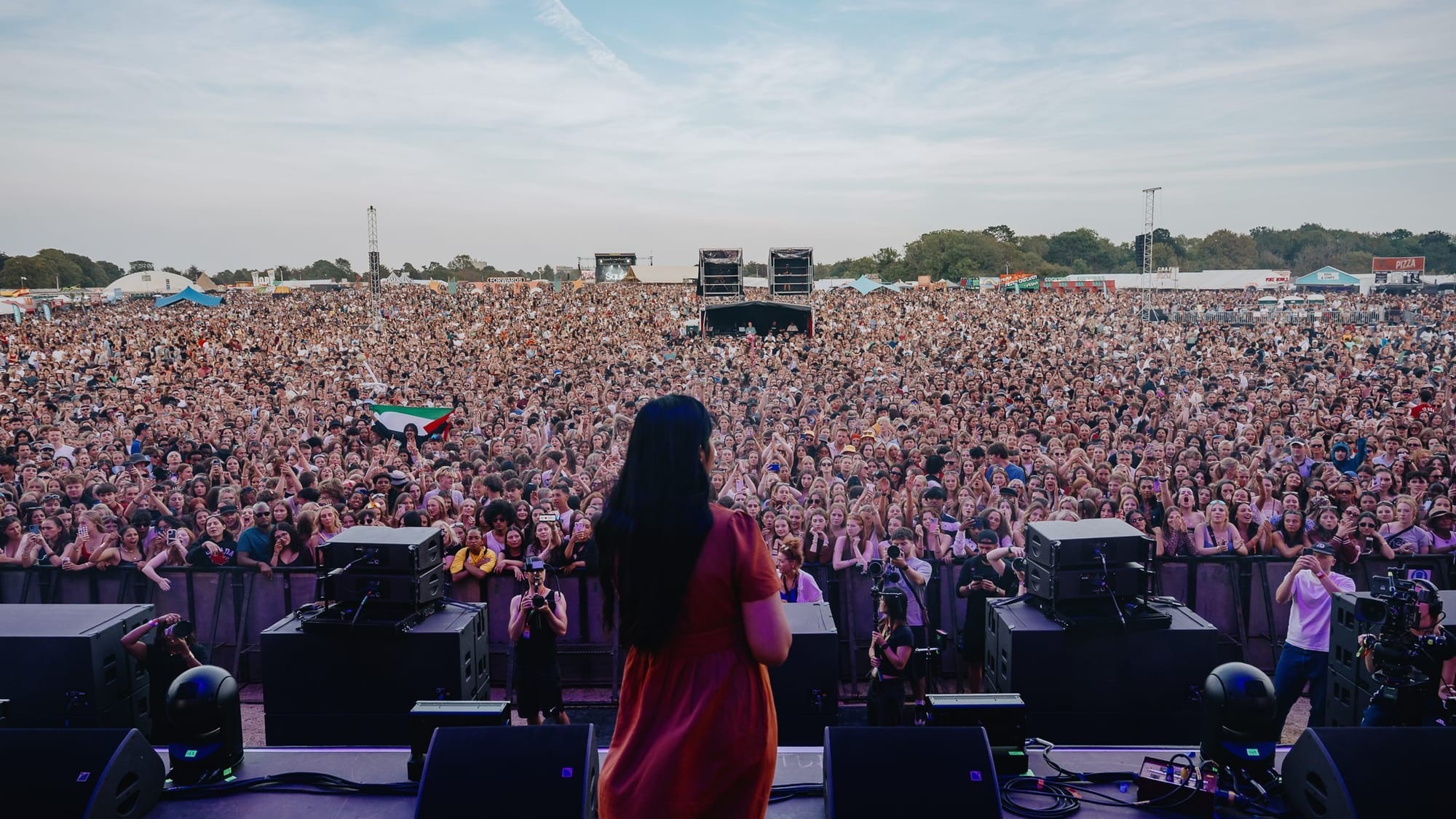 Like many others, nursing Saturday’s hangover meant we were stumbling into Sunday slightly later than the day before. If there was one thing to summon us back to the scene of the crime, though, it was hearing Olivia Dean sound checking ‘Nice To Each Other’ from my housemate’s bedroom window. A more than ideal alarm tone.