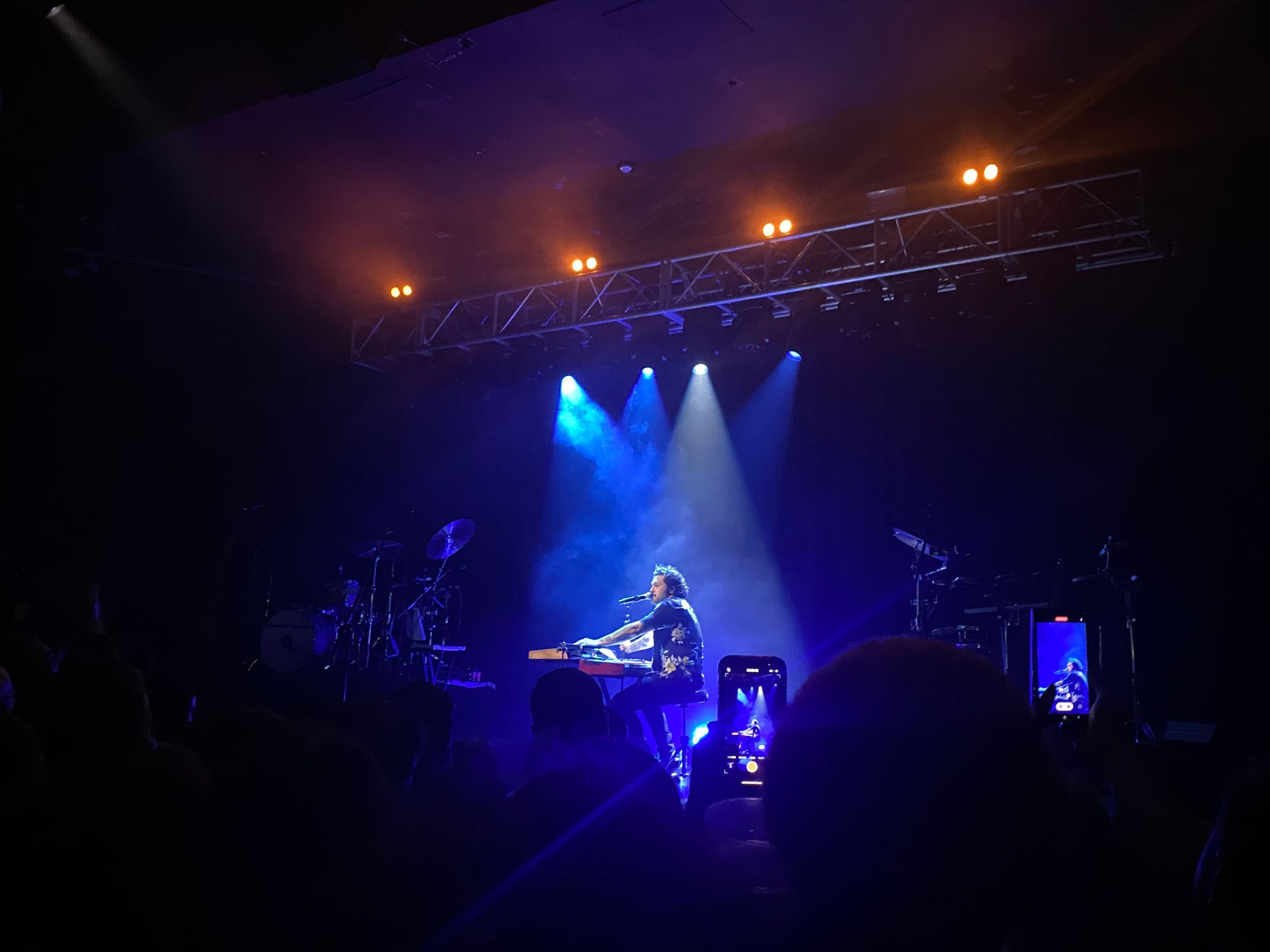 The gig continues to feel more subdued with the performance of ‘spirit boy’. It delves their relationship with Christ whilst living in London away from the fame down under. Poetic guitar riffs soar across the vocal melodies followed by a gorgeous violin interlude by Hobden which is enhanced by gentle acoustic guitar strumming. The band exit the stage with just Le’aupepe left sitting at the piano. ‘Is everyone okay?’ He asks, ‘I’ve not been okay in years’. ‘The next song is about my siblings who I should probably give a call. Thank you so much for allowing me to grieve my father and for giving a f**k’. The nostalgic and emotional song ‘Brothers’ entrances the audience with soft vocals and simple chordal piano playing. Despite it being so stripped back, his voice fills the room bringing tears to all of our eyes.