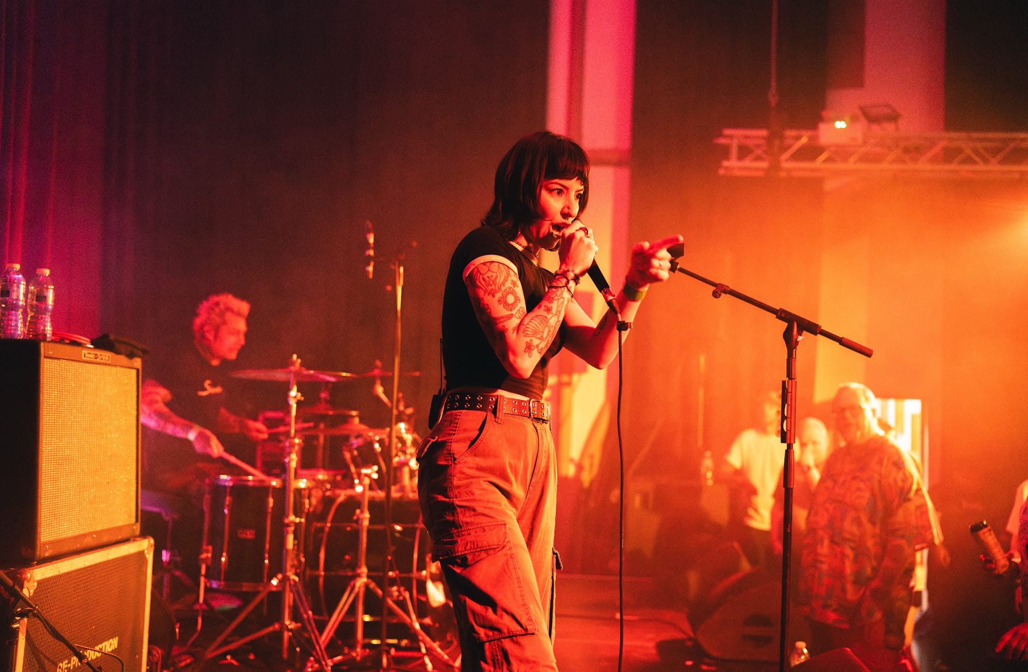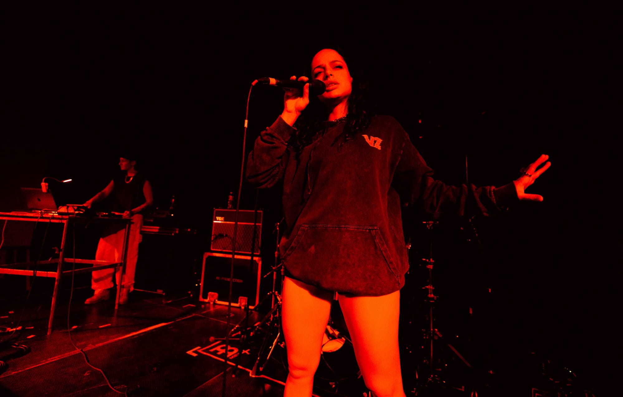 Sonically, she covered ground: clean, chiming guitars, precise drums, vocal lines that sat bright in the mix. ‘Iconic’ bit hardest, a sleek indie-pop cut that pulled in rock fans, d’n’b heads waiting on the headliner, and the indie kids down the middle.