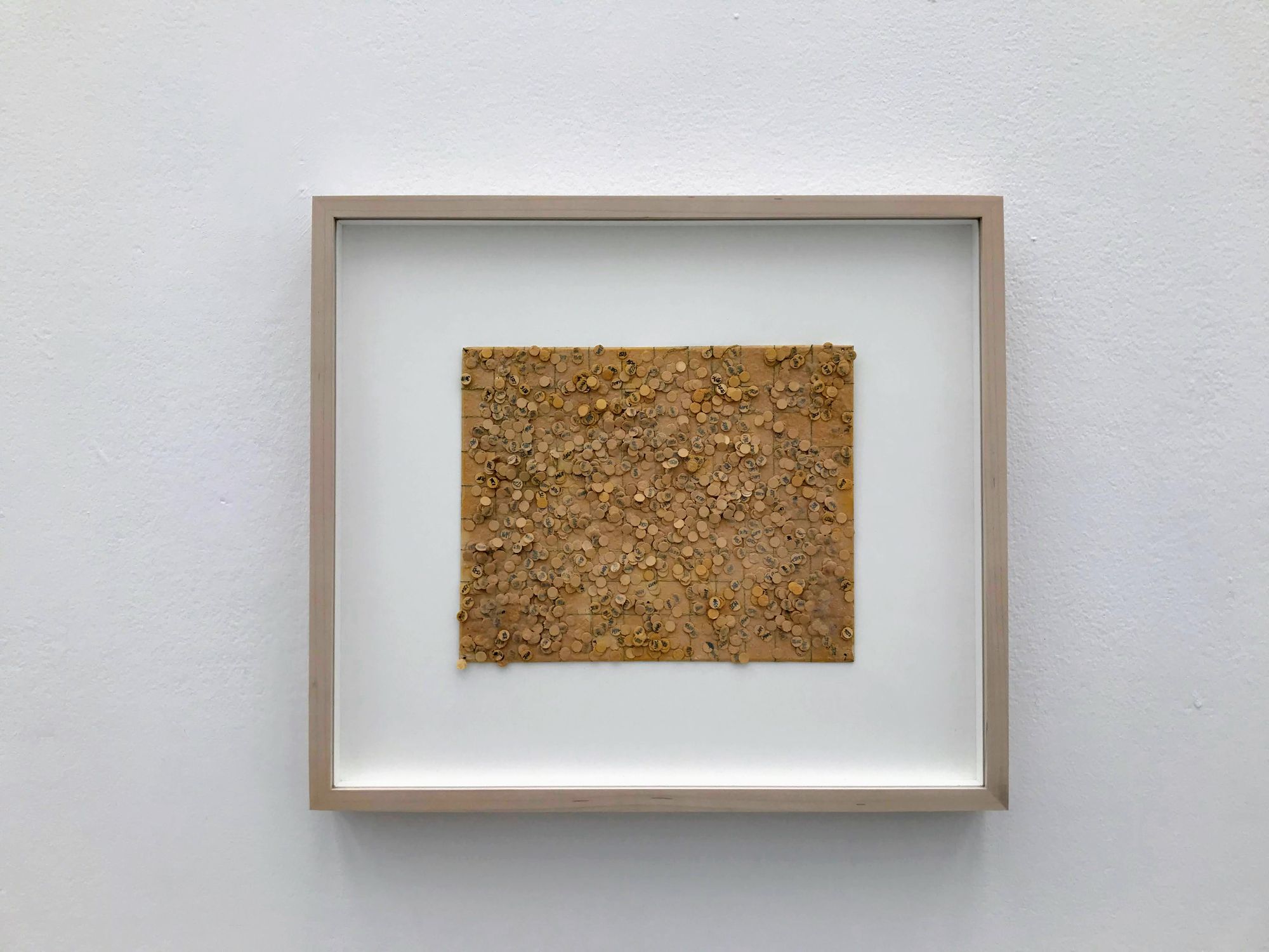 In Untitled (Talcum Power), the use of the chads (‘dots’) have strong implications of democracy and political participation. Whilst pre-dating the 2000 US presidential election, it implicitly recalls the infamous recount over ‘hanging chads’ to determine between Bush and Gore. This connection to voting is reinforced by the way that the chads become scattered and encased across the grid, becoming part of a visibly obsessive process to restrict and contain. Produced between 1973 and 1974, the works undoubtedly reflect contemporary measures to undermine Black Americans’ right to vote.