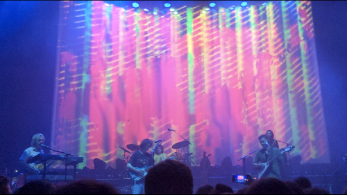 Eventually, the music started, and it would not be stopped for over two hours, flexing both their extensive discography, and their unbelievable talents as musicians to sustain energy. This was done in two ways, firstly, by extending their songs with seamless improvisation, as demonstrated by the hallucinatory opening half an hour of electronic music. These tracks would seamlessly flow into one another, which paired with the mind-bending visuals of their equipment morphing into various colours and shapes, took the audience to a completely different world. The swaying, loose dancing of the audience turned to high energy bouncing as this psychedelic trip reached the conclusive track ‘Gondii’, with a catchy verse which accurately described the state of the crowd: “Can’t get a message to my brain, I can’t control myself”.