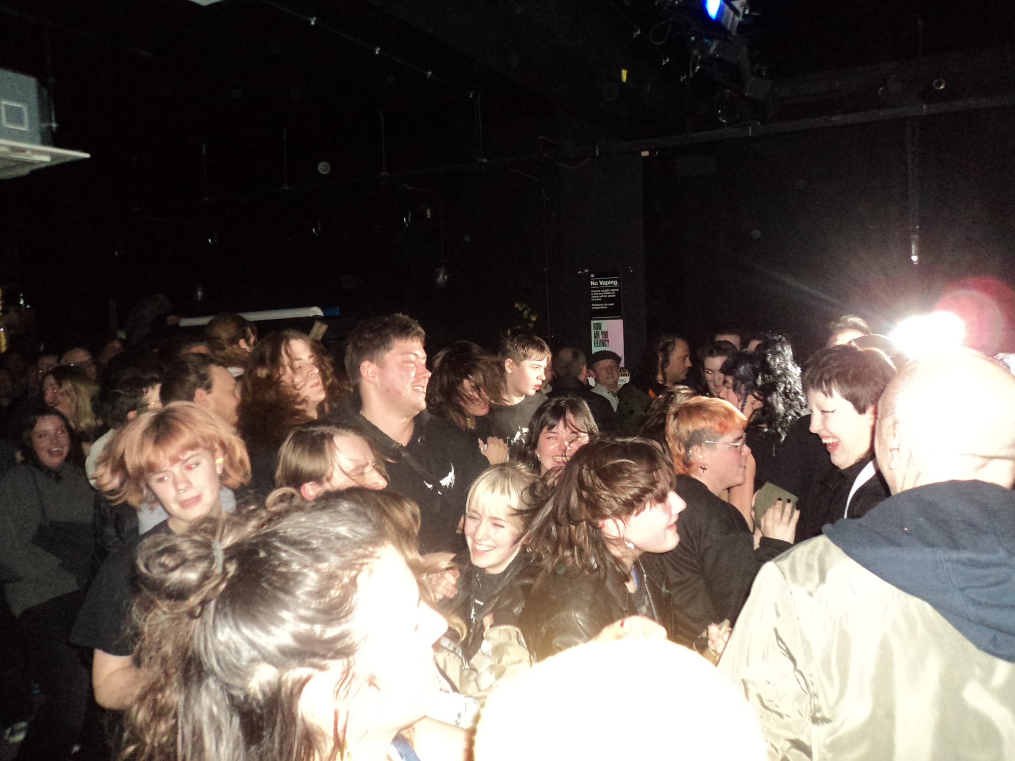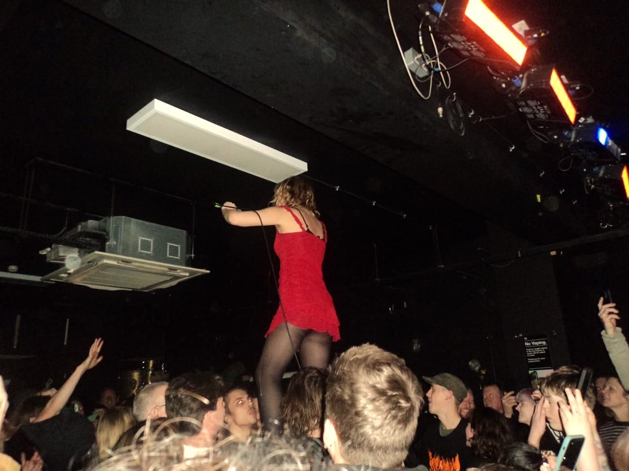 Jumping head first off the shoulders of the audience, Lunny filled me with a motherly concern, that from someone my age I do not like. Filled with the urge to say 'I'm going to count to three and you better be off her shoulders'.