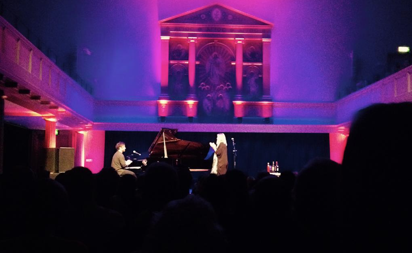 With her last visit to the city boasting a performance at Thekla, the rougher edges of Bristol's vibrant music scene have instead been replaced for a softer aesthetic at St George's. The minimalist stage arrangements - a Steinway grand set under rich red lighting, highlighting the luxuriously gilded religious centrepiece that mirrors the Greek Revival architecture - created an ethereal elegance. To the right of the solo microphone, an amusing addition of not one but two gold-wired wine bottles appeared. This, with some relief, seemed to be an overestimation by stagehands - instead, the singer held a light-hearted air of sophistication as she sipped from a large glass of red throughout her set, obligingly topping up the glass for her pianist accompanier from time to time.