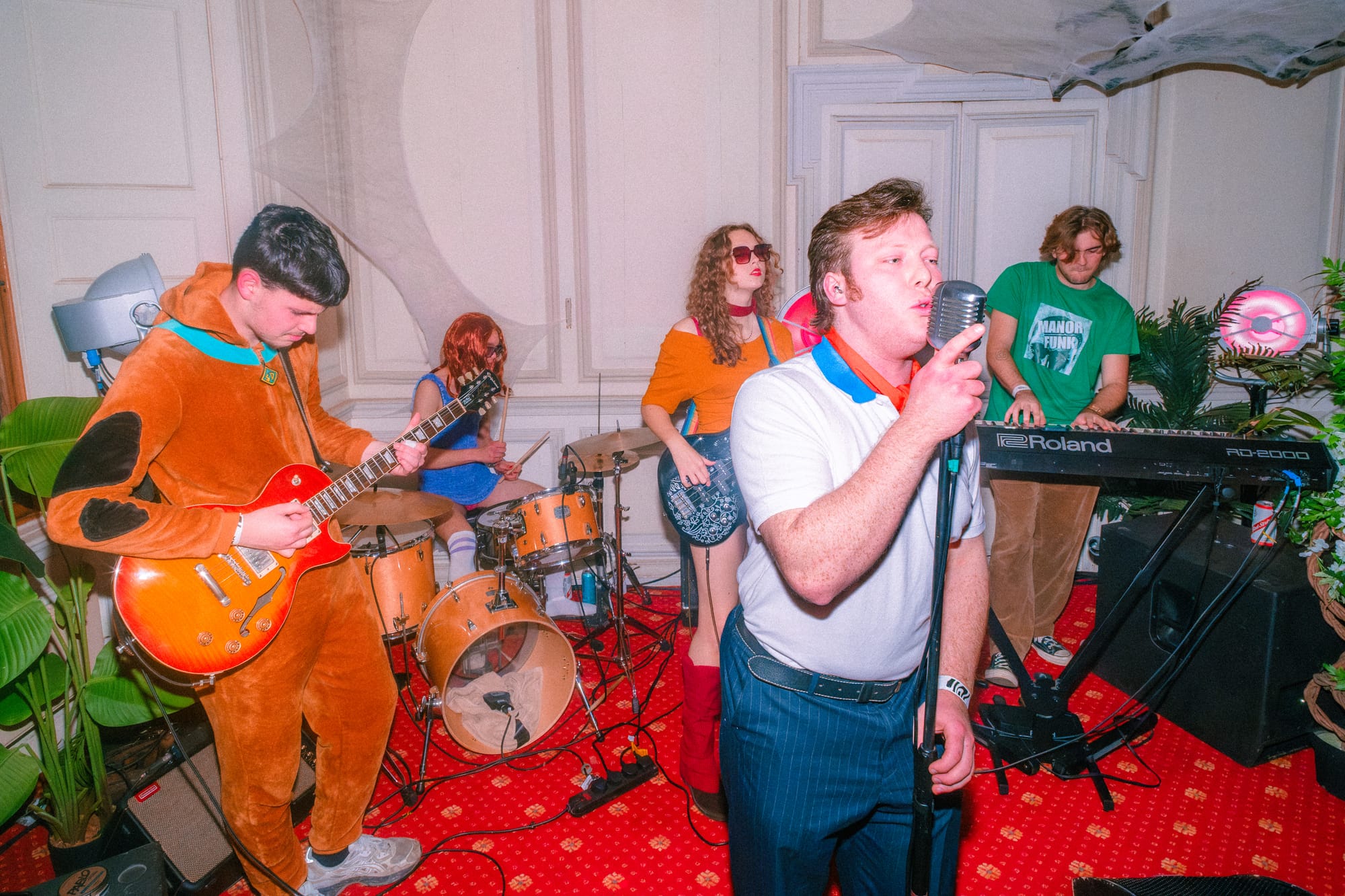 At the Spicer + Cole by the RWA, I managed to ask their drummer and keyboardist the pertinent questions. I was naturally curious about their experience at the Haunted Mansion Party but couldn’t help myself in also asking some more generic questions about their band. I was told that their humble beginnings sprouted from a few of them playing in the old music room of Manor Hall, guitarist James’ accommodation at the time, thus the inspiration for their name (insert very funny quip about how fitting their name was with the location of the event). A few members were picked up along the way, such as vocalist Teddy who was recruited for a few songs which required vocals songs – a man who was eventually adopted for good, as he ‘kept showing up’.