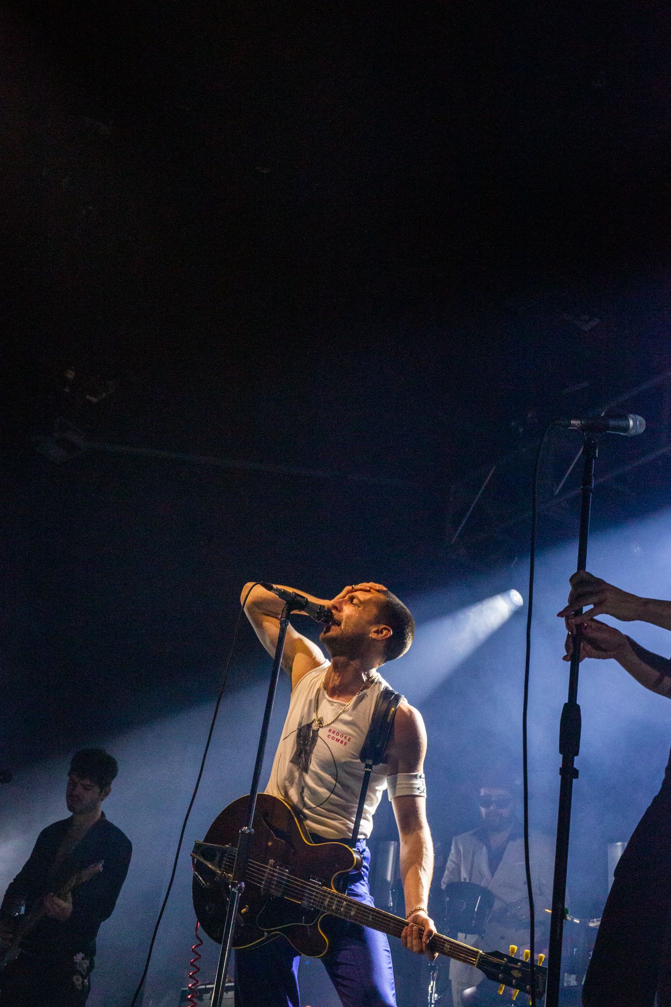 The band plays a cover of The Beatles’ ‘Don’t Let Me Down’ introduced with a smooth piano solo from, multi-instrumentalist João, followed by a Western film twang from the guitars. We see a different side of Kane here; he’s gone from cool uncle to hip swaying cowboy in love. Tossing the mic stand to the side, Kane is roaming and groaning. He wraps the cable around himself and sings ‘I guess nobody ever really done me / Oh she done me, / She done me good’. I’ve never seen a performance as embodied as this, Kane relishes in each and every lyric he sings. Someone in the crowd yee-haws! What a time.