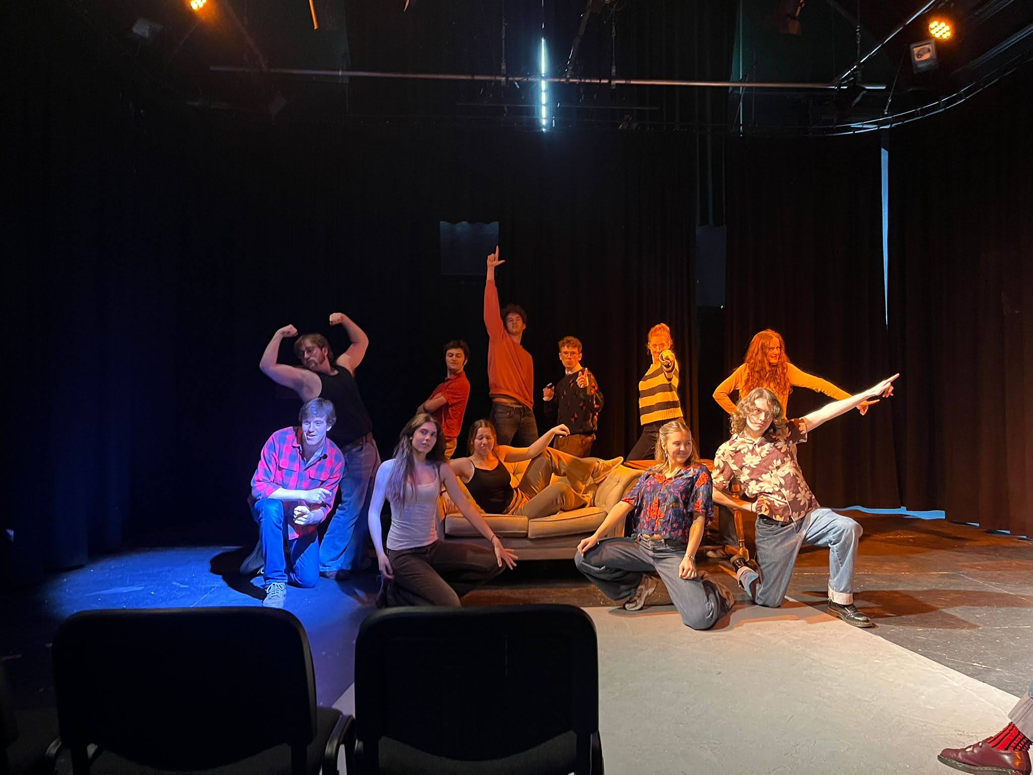The simplicity of the Kelvin Player’s House set design (a couch and accompanying side table that would be re-decorated between scenes by crouching actors) worked to the play’s advantage without distracting from the performances. It was the actors’ outfits that really set the scene: from purple leather pants to sequined shirts and swirly flower makeup.